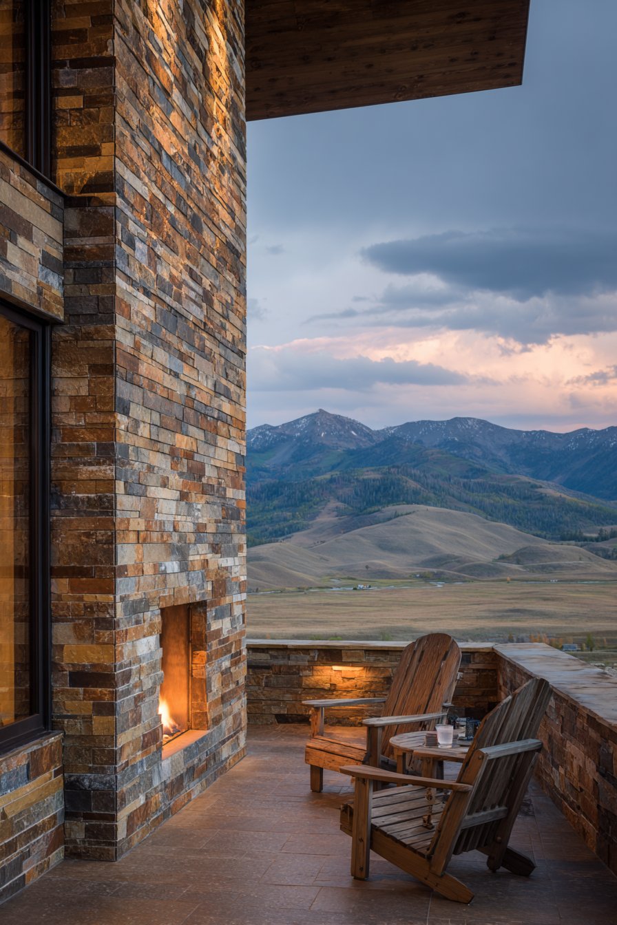 The vertical emphasis of stacked stone draws eyes upward, making outdoor fireplaces appear more substantial and architecturally significant. This installation style particularly suits tall chimney designs where the stone surround becomes a sculptural element in its own right. The natural materials connect outdoor living spaces to their surroundings, creating harmonious transitions between built structures and natural landscapes.
