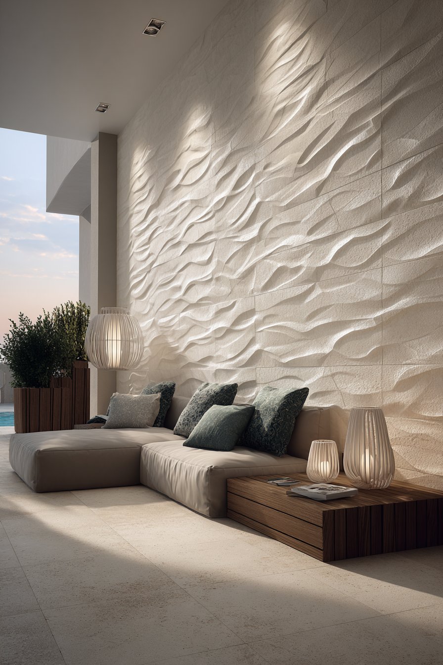 - Keep surrounding décor minimal to allow the wall’s sculptural qualities to serve as the primary design statement