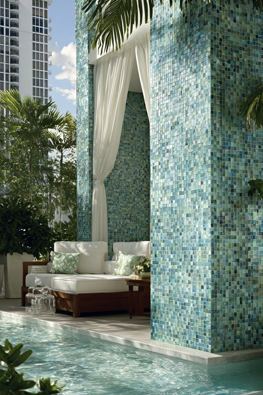 17. Iridescent Glass Mosaic Poolside Luxury