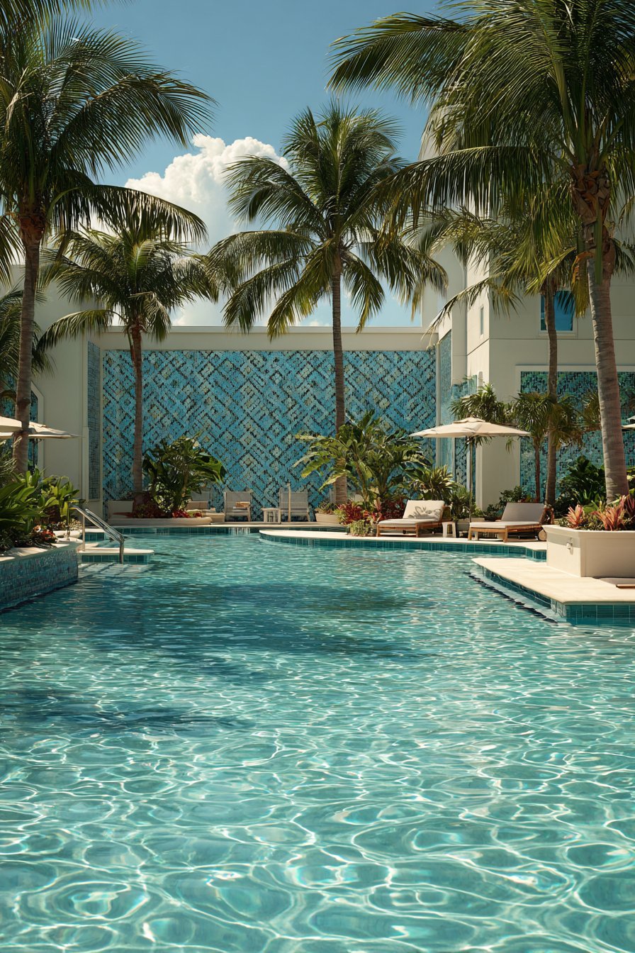 - Choose tile colors that complement pool water—blues and turquoises create cohesive aquatic color stories