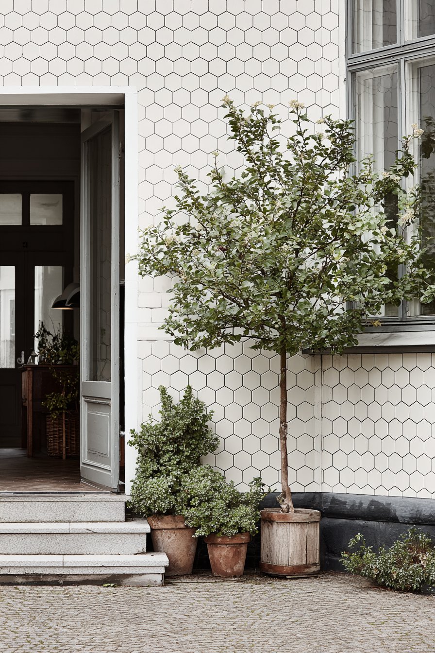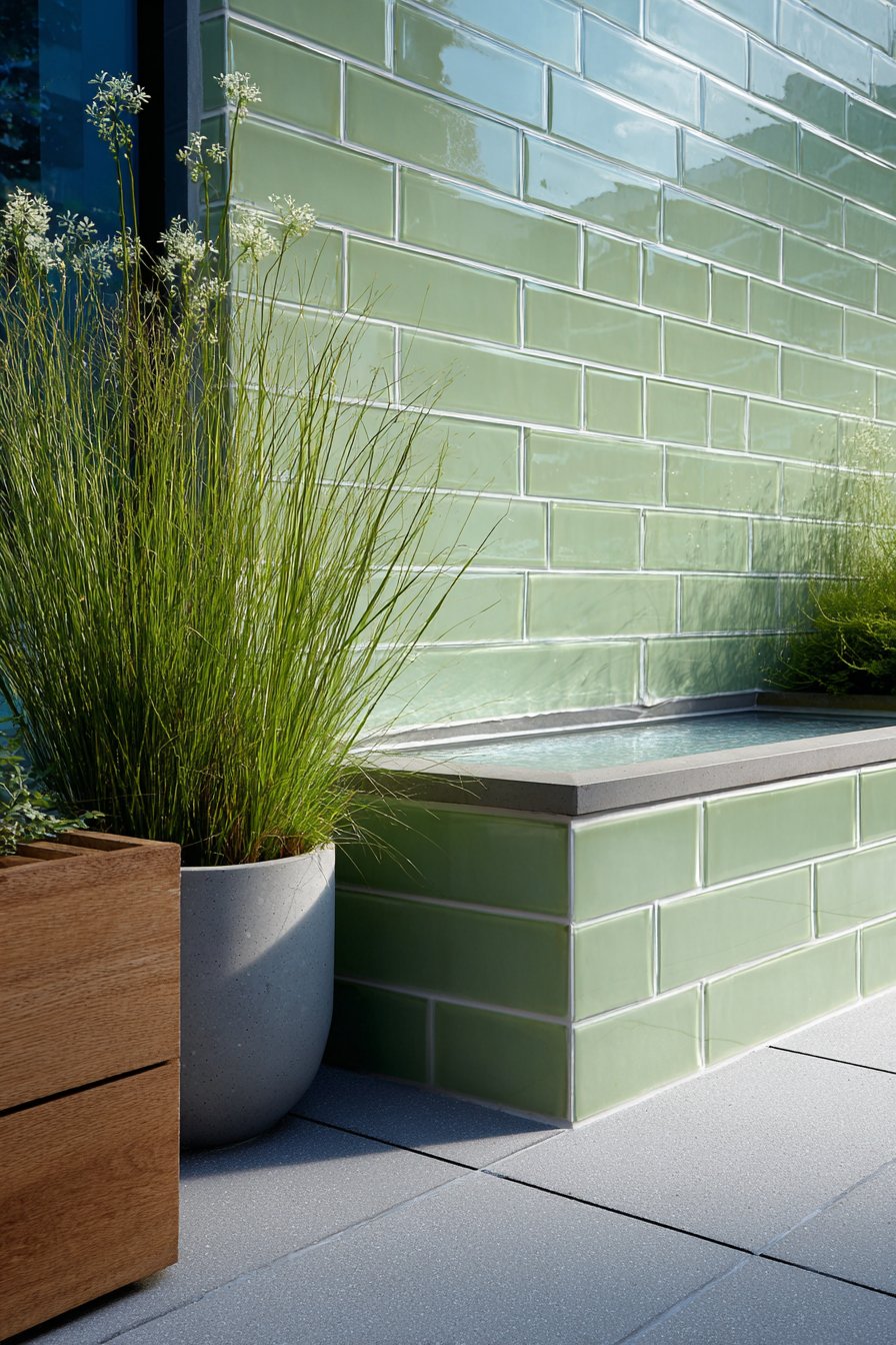 - Consider extending the same tile to horizontal surfaces like planter caps for design continuity
