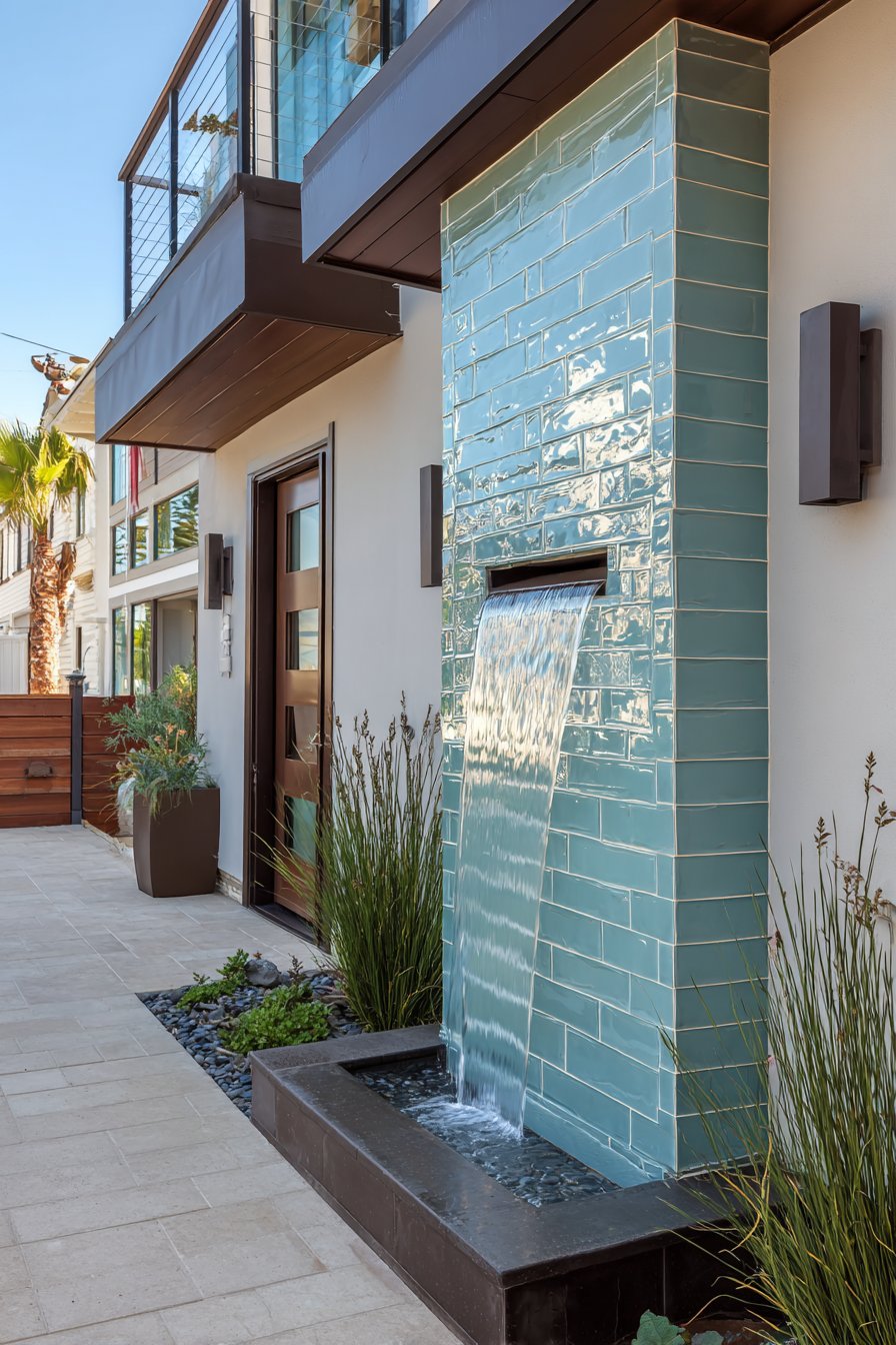 - Position water features or planted areas adjacent to tiled walls to create focal points within the design
