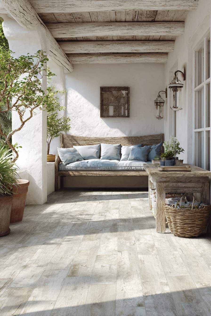 Nothing captures the relaxed elegance of coastal living quite like white-washed brick-style tiles that evoke beachside cottages and seaside retreats. These porcelain tiles replicate the dimensional quality of stacked brick while offering the durability and weather resistance required for outdoor applications. The soft white finish, complete with subtle color variations and authentic weathering effects, creates a bright, airy backdrop that amplifies natural light and visually expands outdoor spaces.