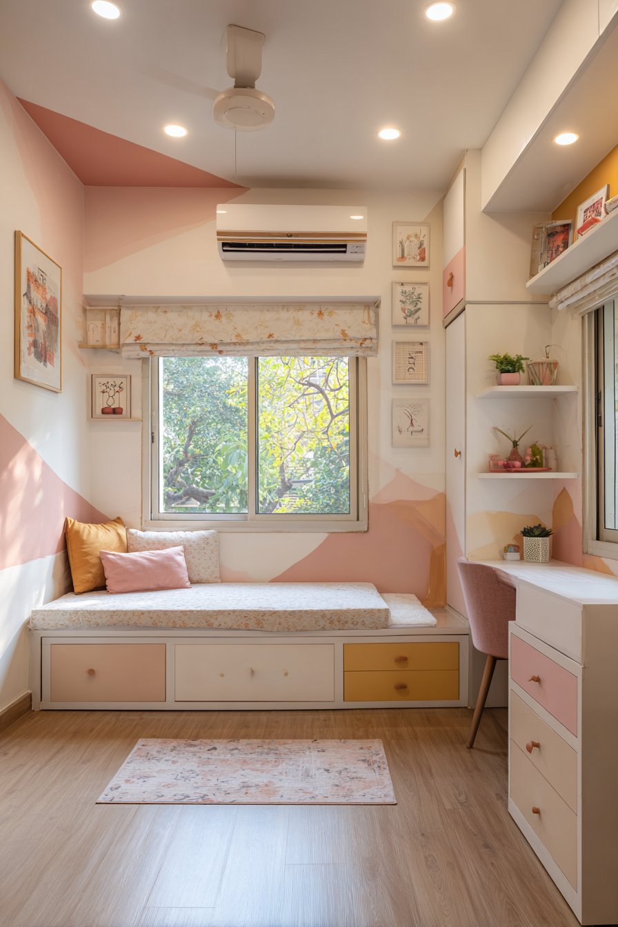 Nearly every successful PG room decoration idea maximizes vertical space rather than consuming precious floor area. From loft beds with integrated study zones to wall-mounted desks and vertical garden installations, these designs recognize that upward expansion provides the greatest opportunity for increased functionality without sacrificing livability. Traditional furniture approaches designed for spacious homes simply don’t translate to compact PG rooms, necessitating creative solutions that challenge conventional furniture placement and room organization.