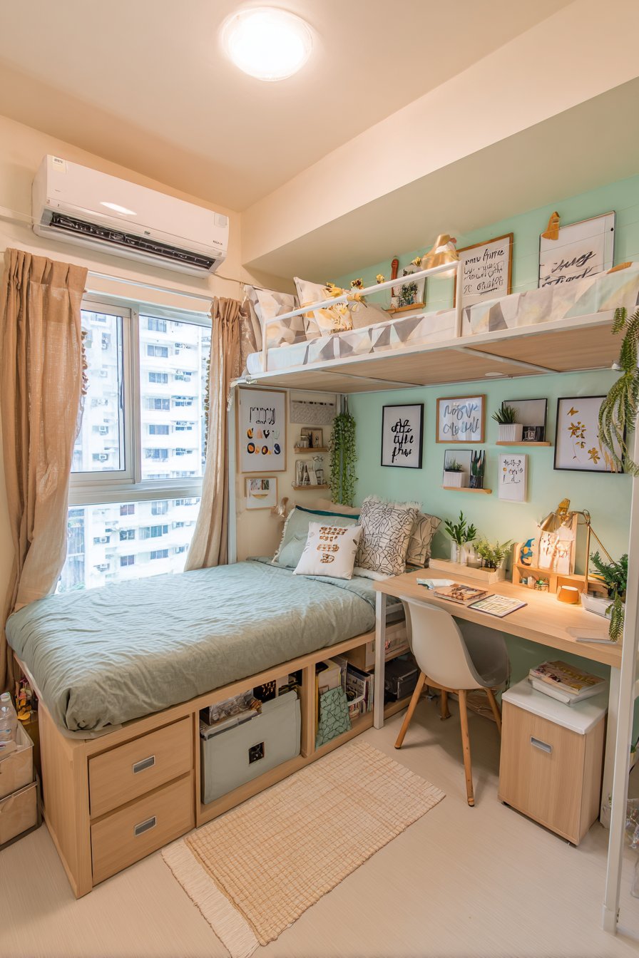 1. Vertical Living: Loft Bed with Integrated Study Space
