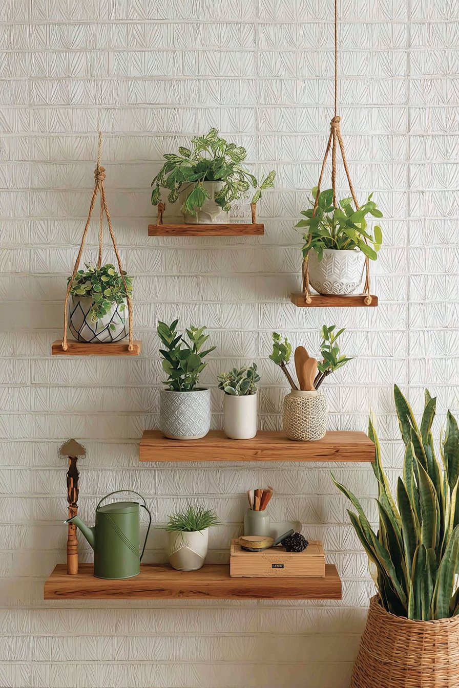Bringing nature indoors dramatically improves air quality, reduces stress, and adds vibrant life to static spaces, but floor space for plants is often limited in PG rooms. A vertical garden wall solves this challenge by utilizing wall space to create a lush display of greenery. Mounted planters and hanging pots arranged in an artistic pattern showcase easy-care varieties like trailing pothos with cascading vines, structural snake plants with dramatic upright leaves, and spider plants producing charming offshoots.