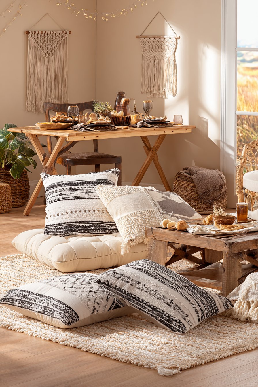 - Invest in high-quality, firm floor cushions with removable, washable covers to maintain freshness in a compact space