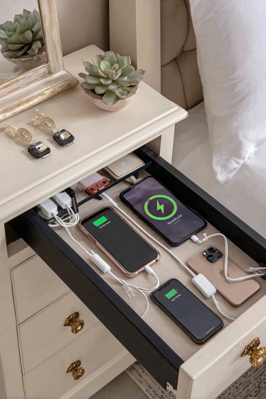 - Include a small drawer organizer for storing extra cables, adapters, and old chargers you’re keeping as backups