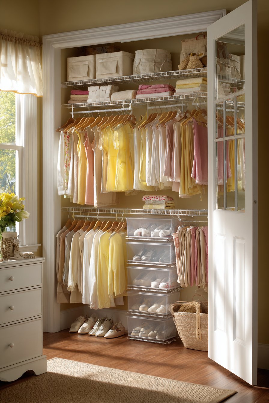 - Rotate seasonal items, storing off-season clothing under the bed or in upper storage to keep only currently relevant pieces accessible