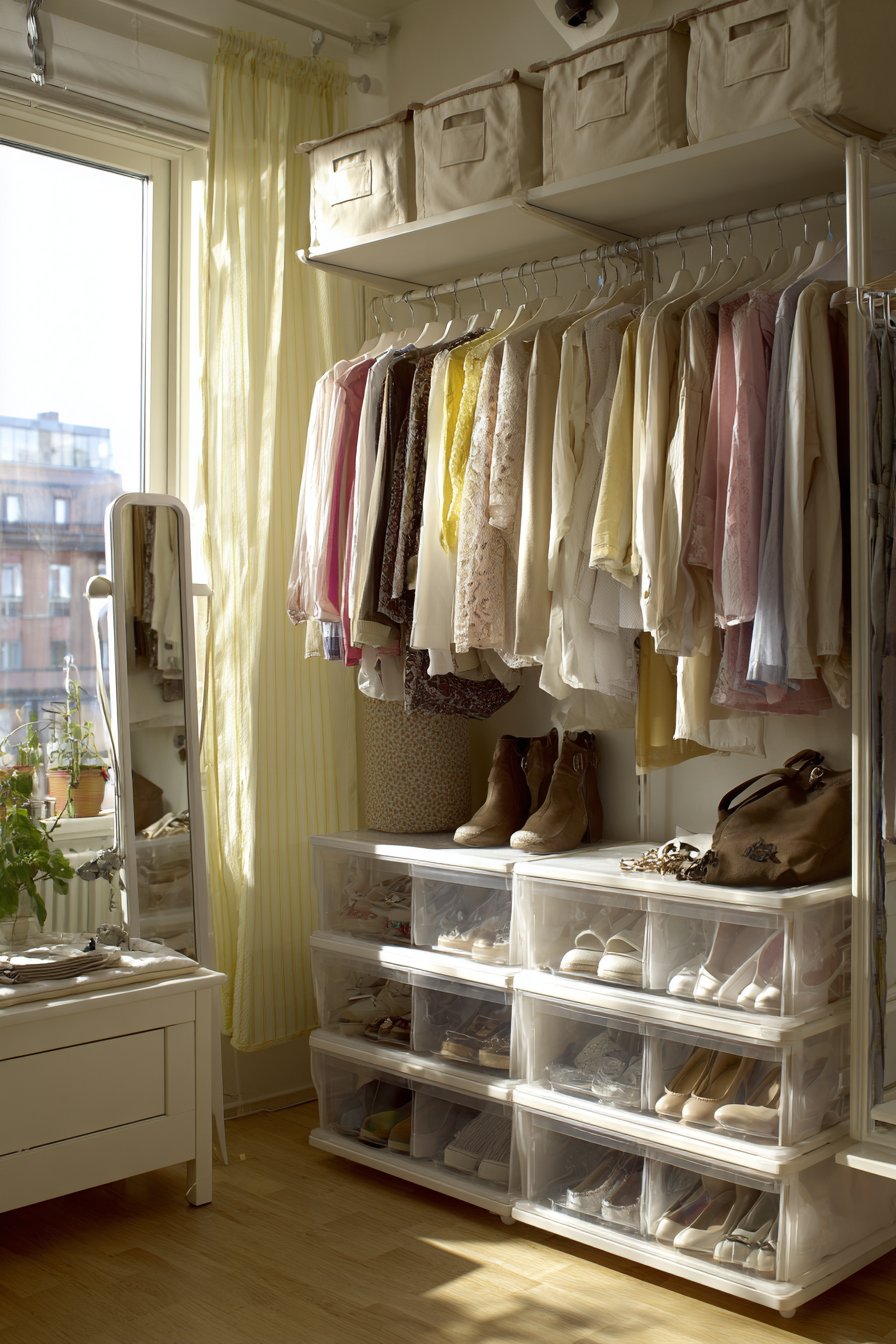 - Invest in a sturdy garment rack rated for the weight of your full wardrobe to prevent sagging or collapse