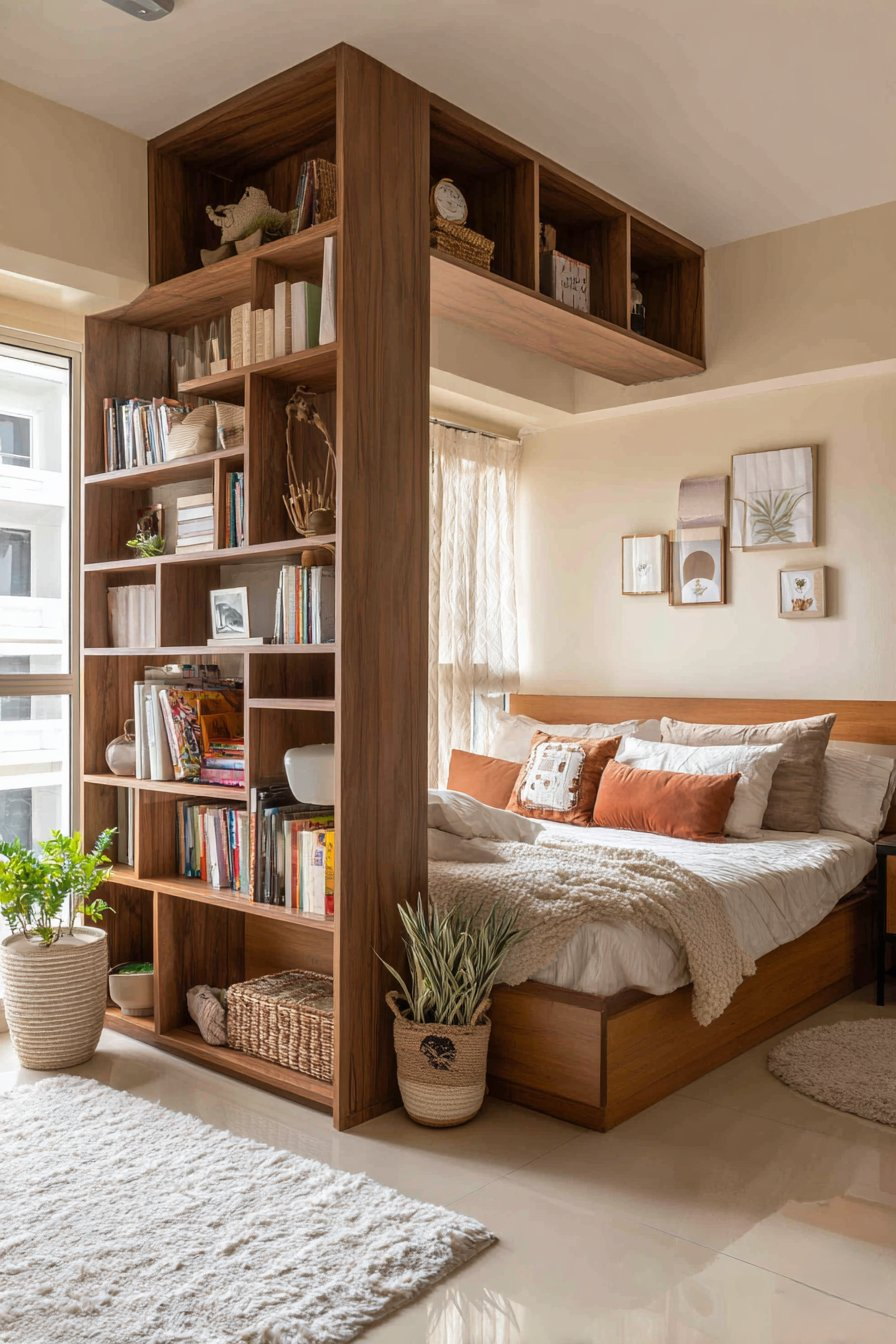 7. Smart Room Division with Bookshelf Partition