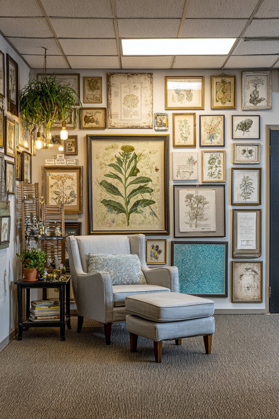 Key Design Tips: Source vintage botanical prints from antique markets, reproduction prints from botanical gardens, or high-quality digital downloads from museum collections. Use identical frame sizes and matting throughout—consistency is key for scientific collections. Arrange prints in a grid pattern to echo the organizational principles of botanical classification. Choose frame colors that reference nature—green, warm wood tones, or even black for dramatic contrast. Position the arrangement where natural light will illuminate without creating glare on frame glass.