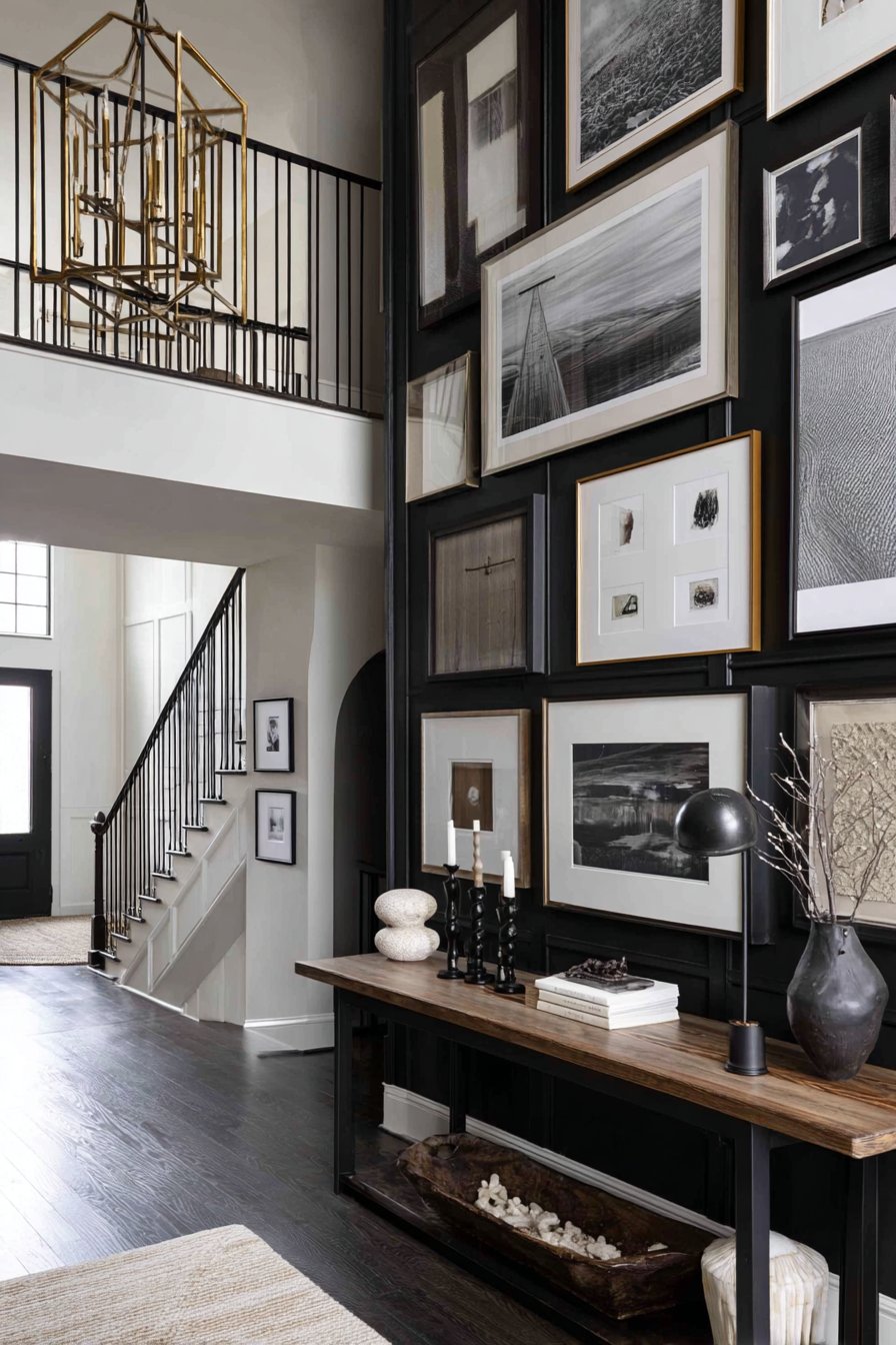 In today’s design landscape, picture walls have evolved far beyond the traditional single frame above a sofa. Modern approaches embrace everything from symmetrical grids that satisfy our love of order to eclectic salon-style arrangements that celebrate collected treasures over time. The right picture wall can define a room’s character, enhance architectural features, and even solve design challenges like awkward wall spaces or lack of color. From grand two-story entryway displays to intimate corner arrangements, these installations offer solutions for every room and every style preference.