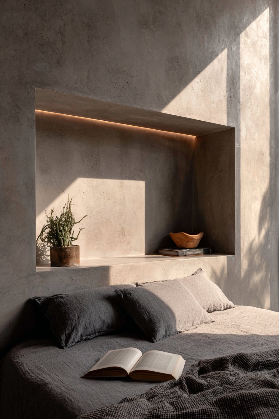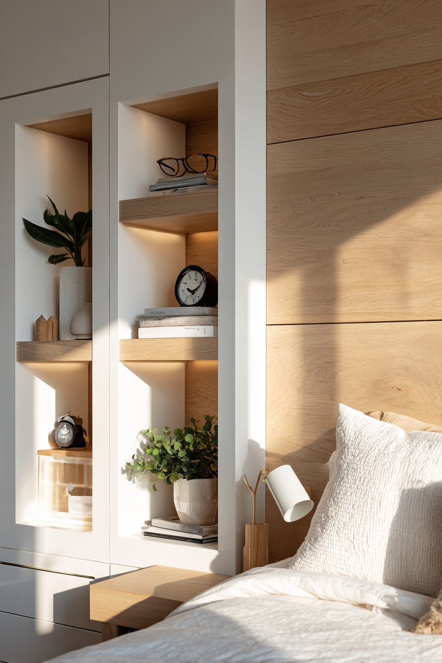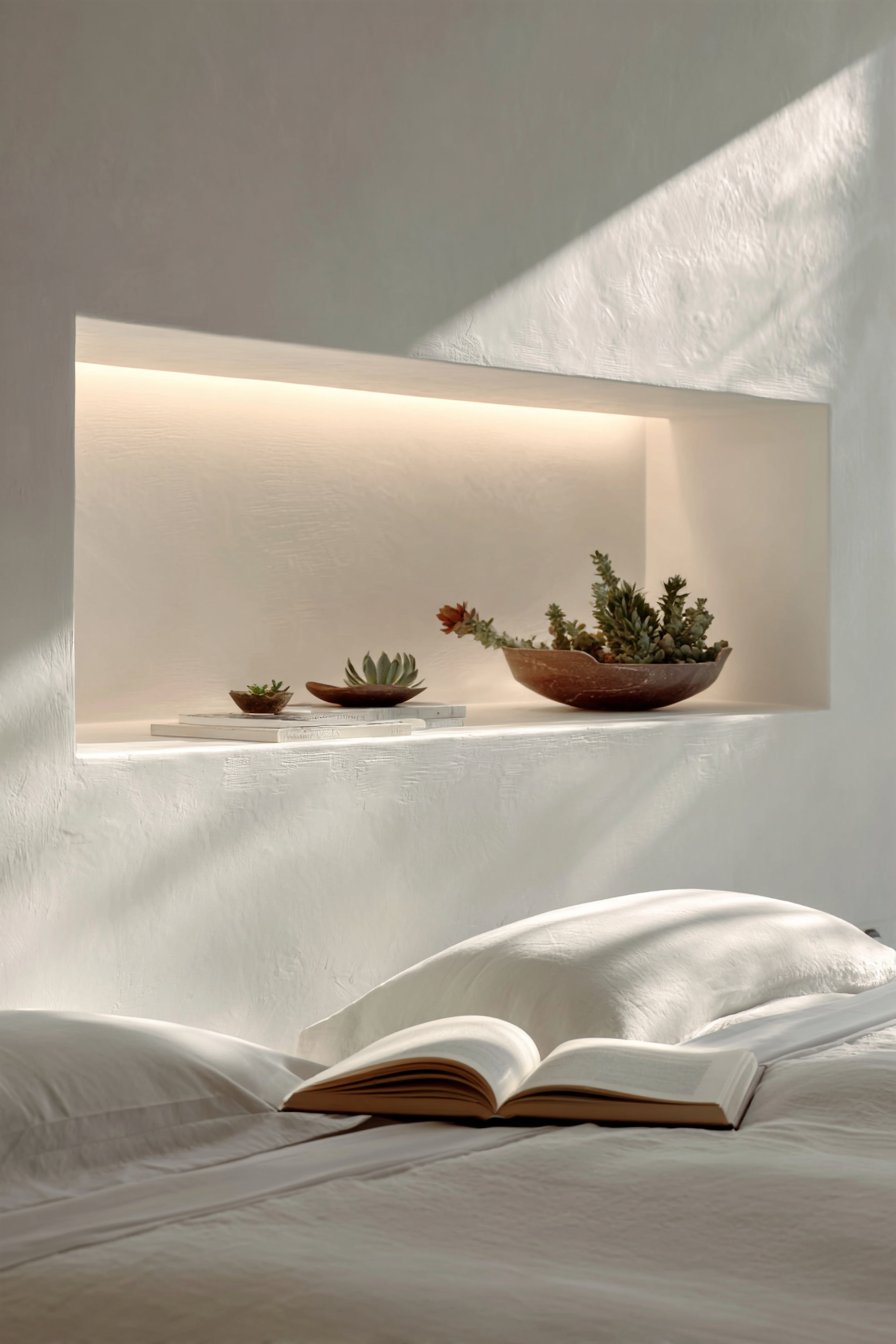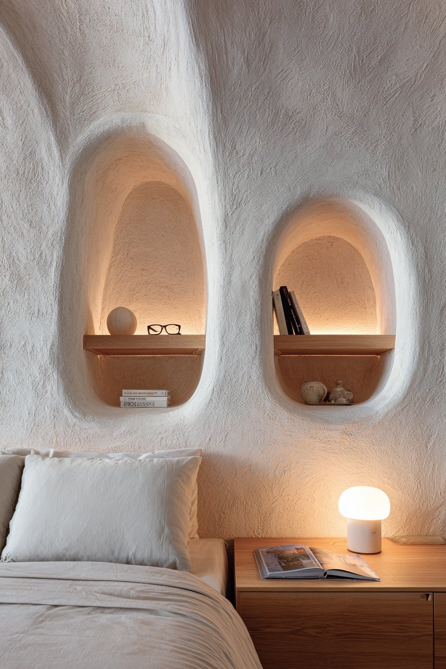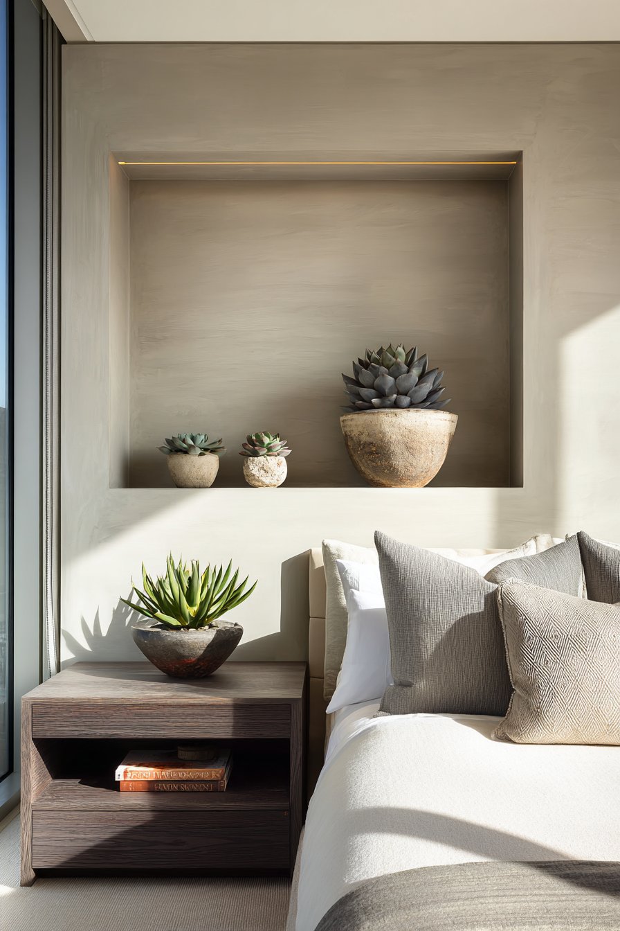 2. Minimalist Bedroom Niches as Nightstand Alternatives