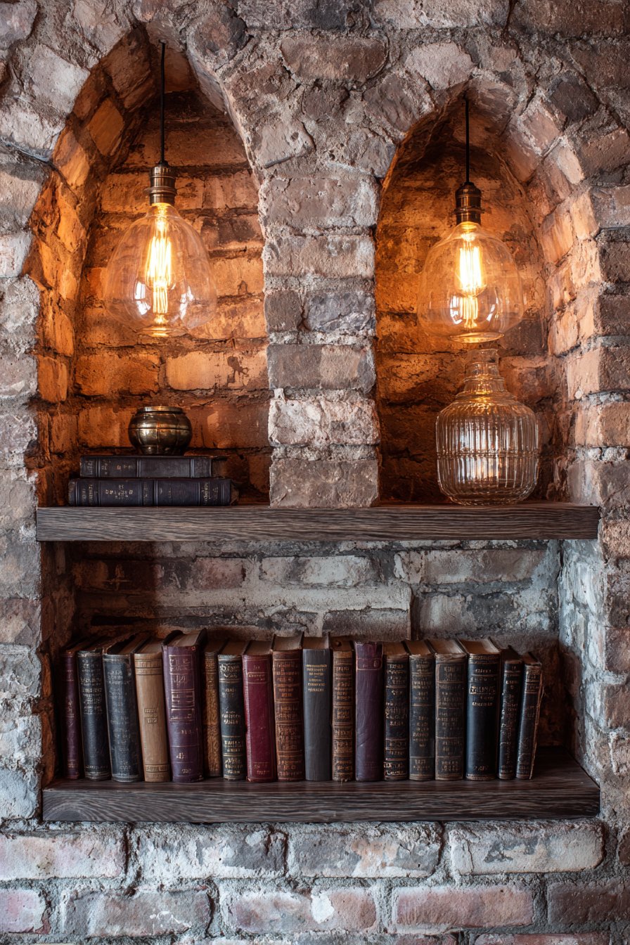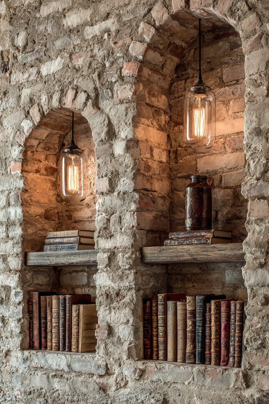 The variety of design styles represented—from rustic farmhouse to contemporary minimalist, from traditional transitional to industrial modern—demonstrates how recessed niches adapt to virtually any aesthetic direction. The exposed brick arched niches celebrate historical materials and classical forms. The sleek glass-shelved bathroom niches embrace contemporary transparency and clean lines. The natural wood Scandinavian niches highlight organic materials and simple forms. This stylistic range proves that recessed niches function as design chameleons, adapting to express whatever aesthetic vision guides the overall space.