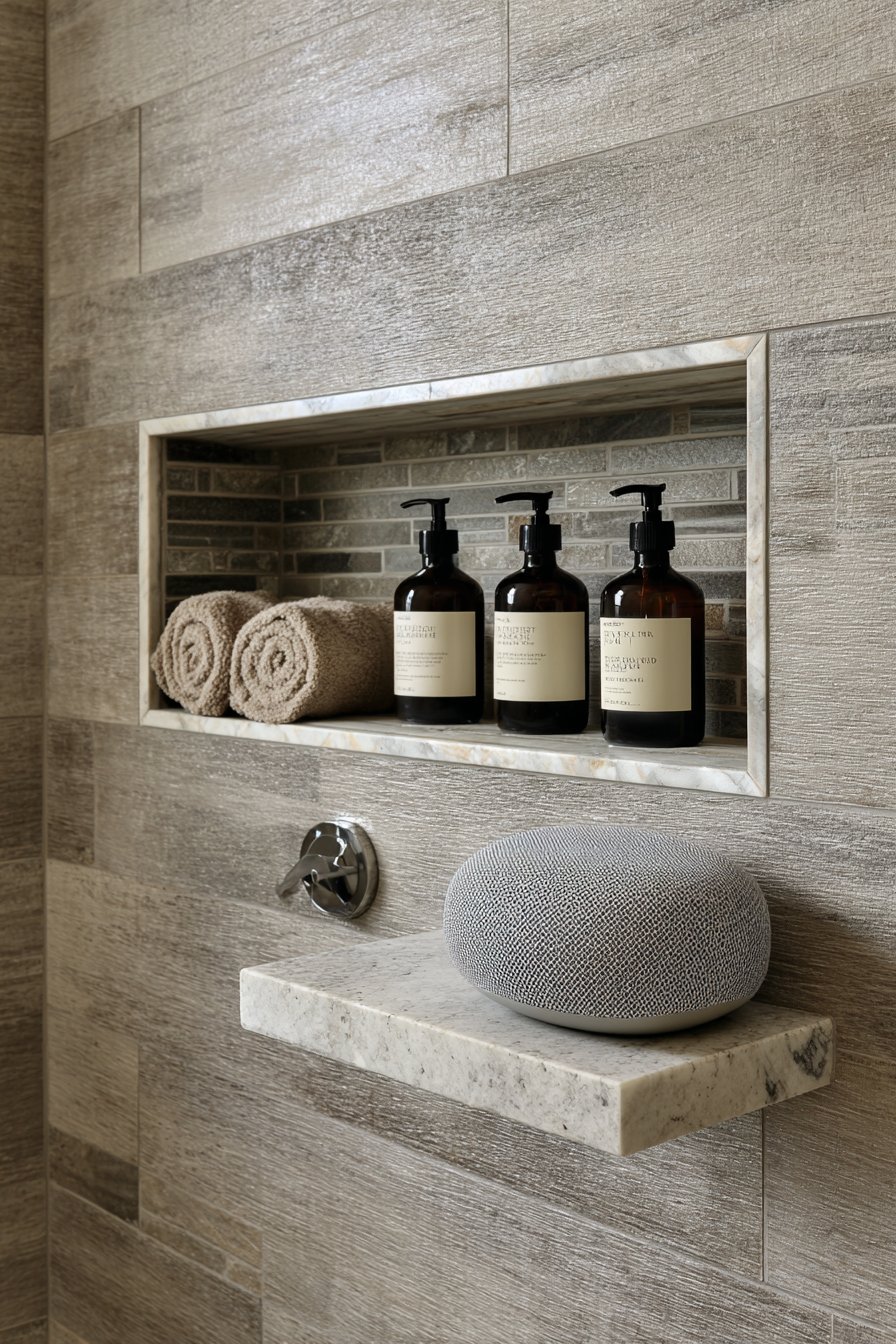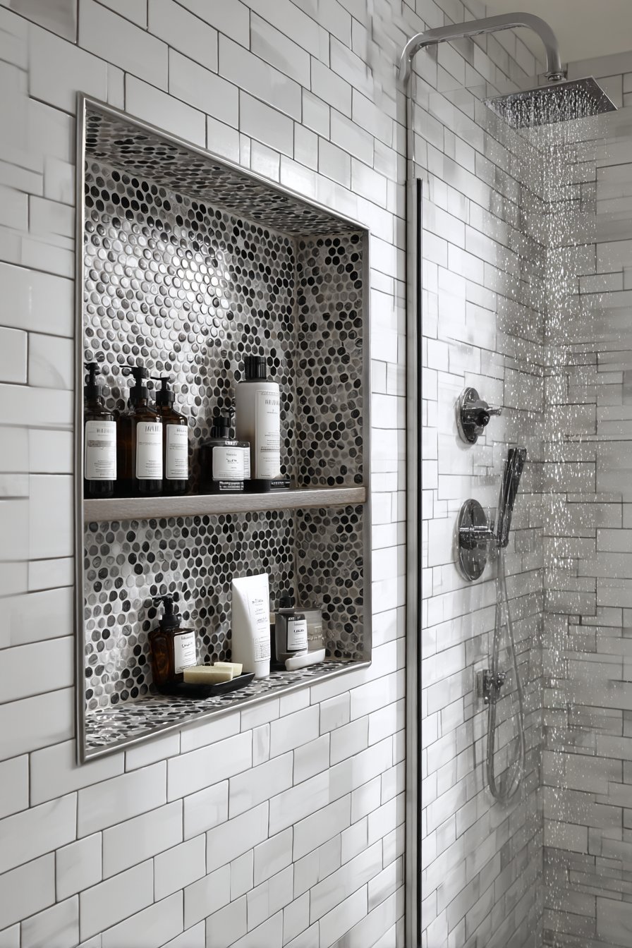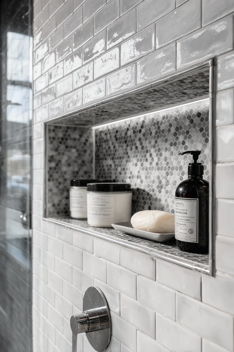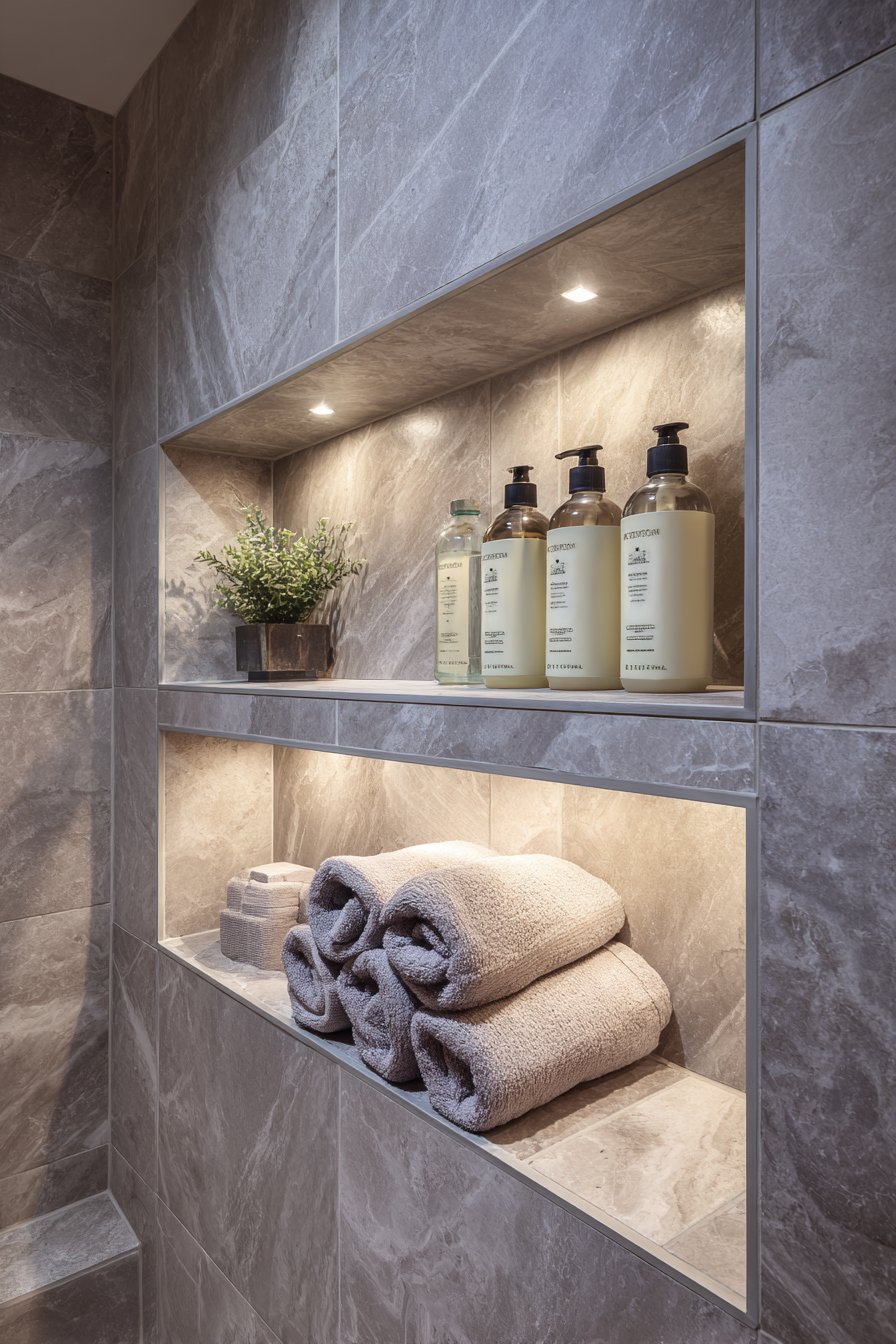 3. Contemporary Bathroom Shower Storage with Horizontal Niches