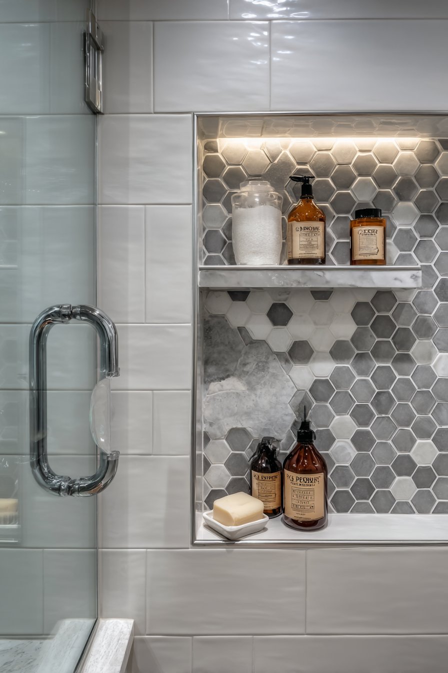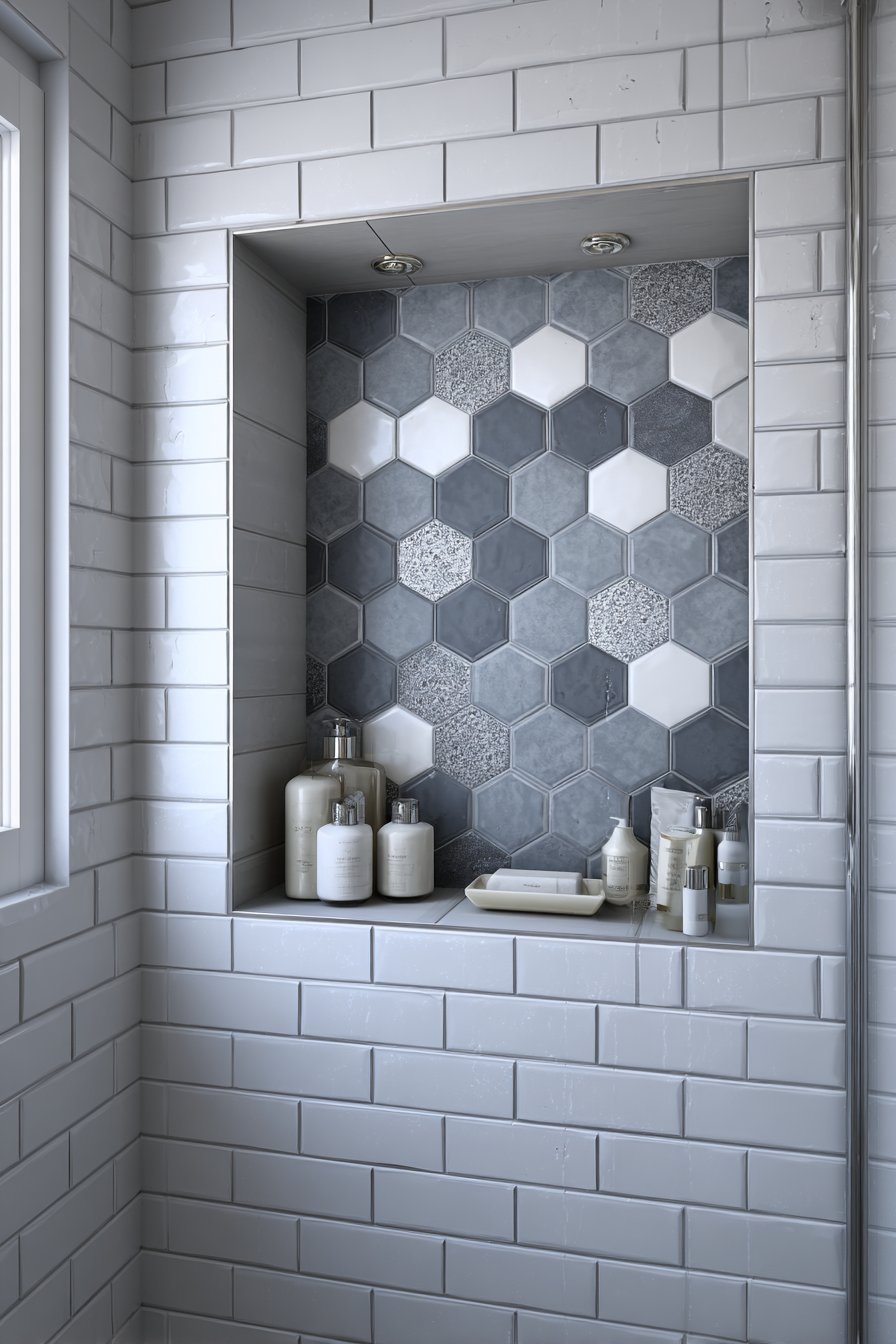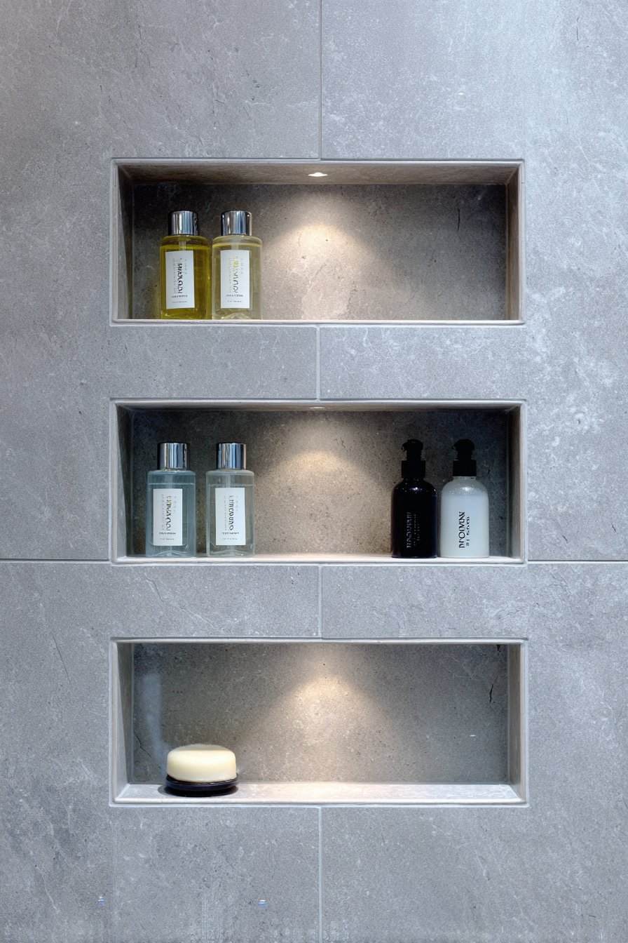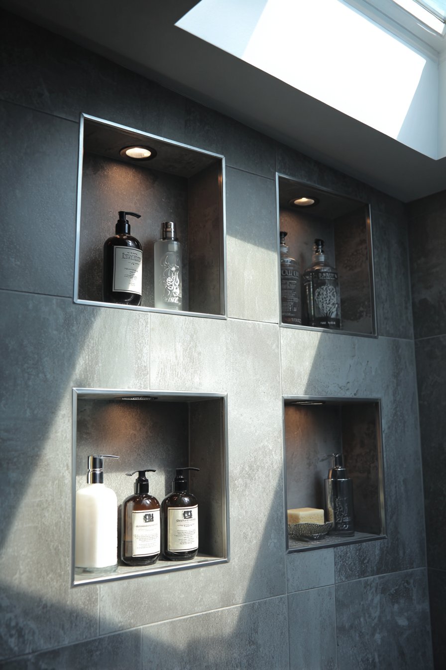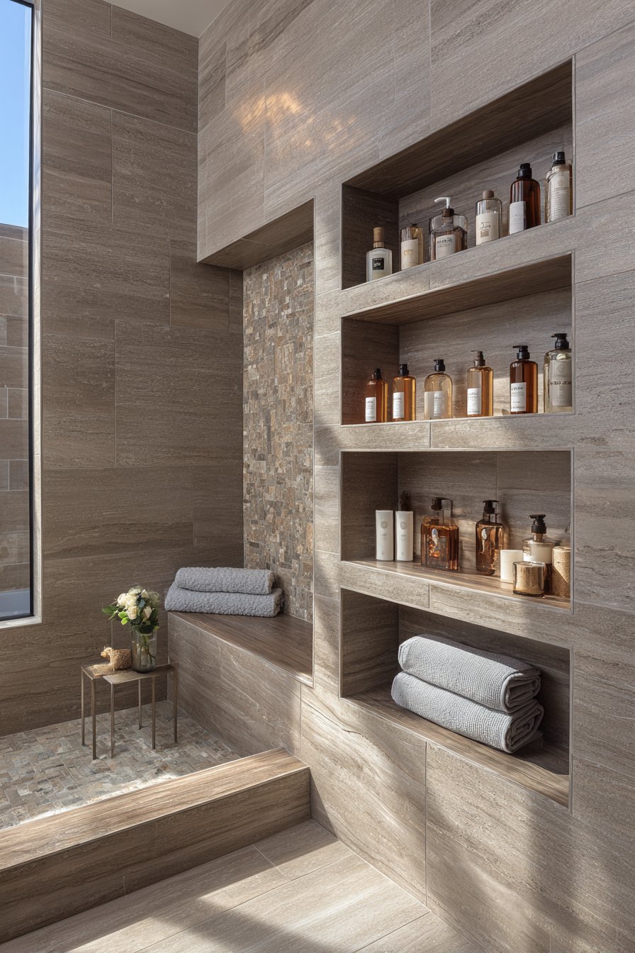 3. Contemporary Bathroom Shower Storage with Horizontal Niches