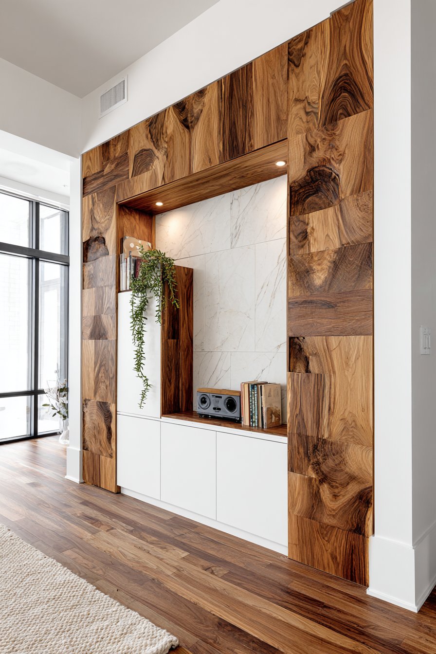 Material selection plays a crucial role in the success of these niche designs, with each concept carefully pairing surface finishes, trim details, and interior treatments to create cohesive, high-quality results. The marble-look porcelain tiles in luxury bathroom niches introduce stone’s natural beauty while providing superior water resistance and durability. The contrasting wood species in Scandinavian living room niches celebrate natural grain patterns while creating visual depth through color variation. The velvet linings in closet jewelry niches provide protective cushioning while introducing tactile luxury that elevates functional storage into sensory experience. These material choices demonstrate how thoughtful specification can enhance both performance and aesthetics.