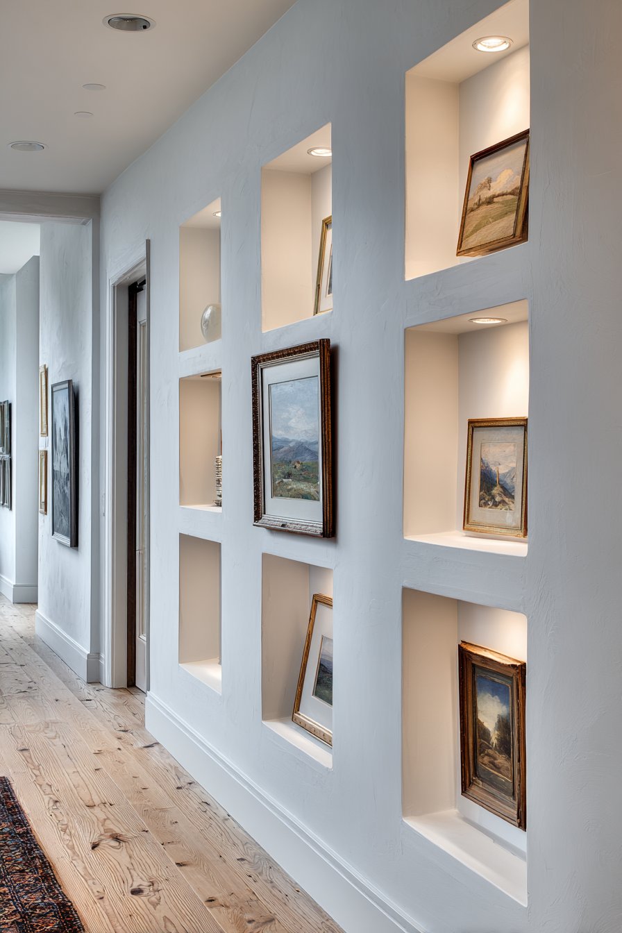 - Include picture-hanging hardware within niches to simplify artwork changes