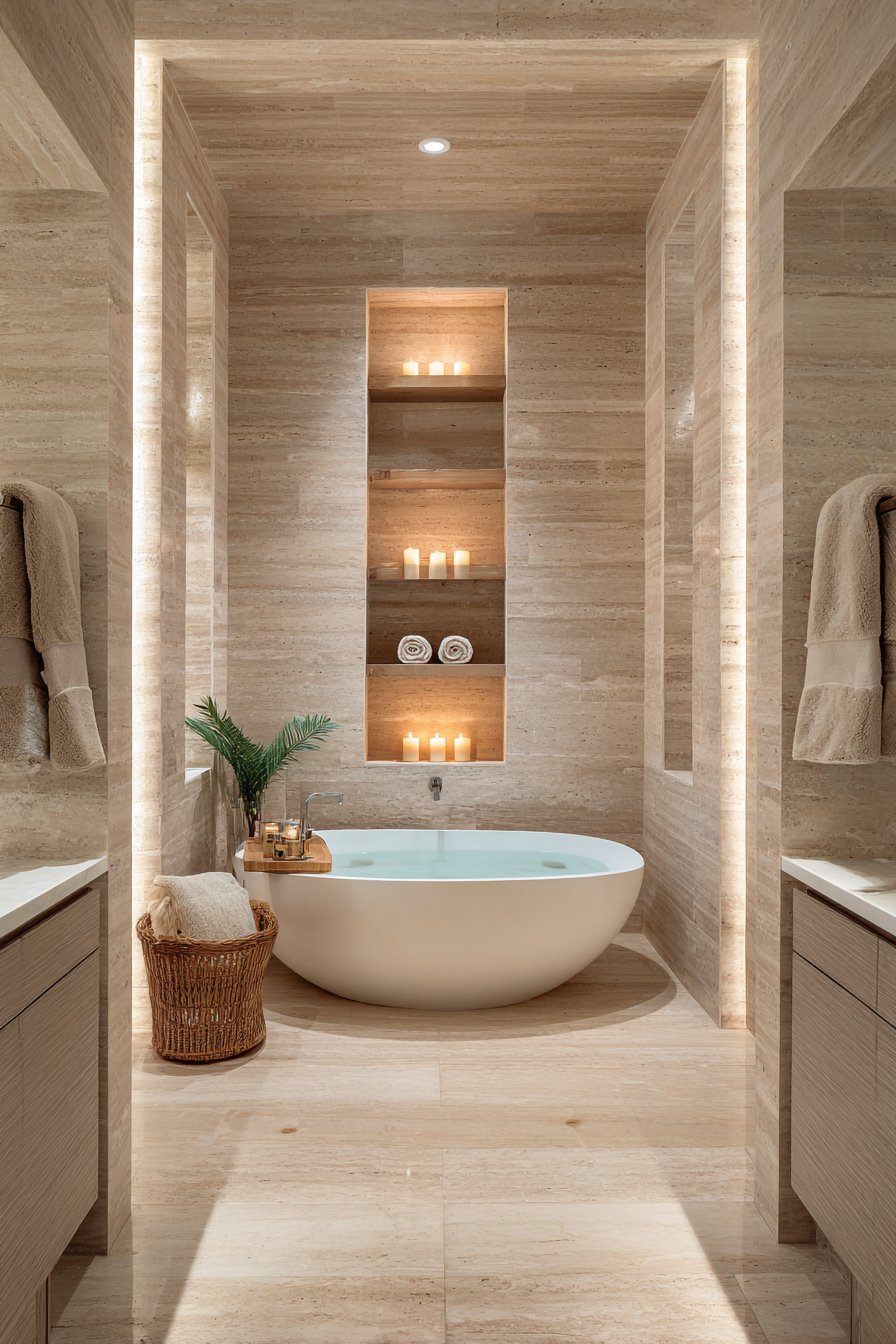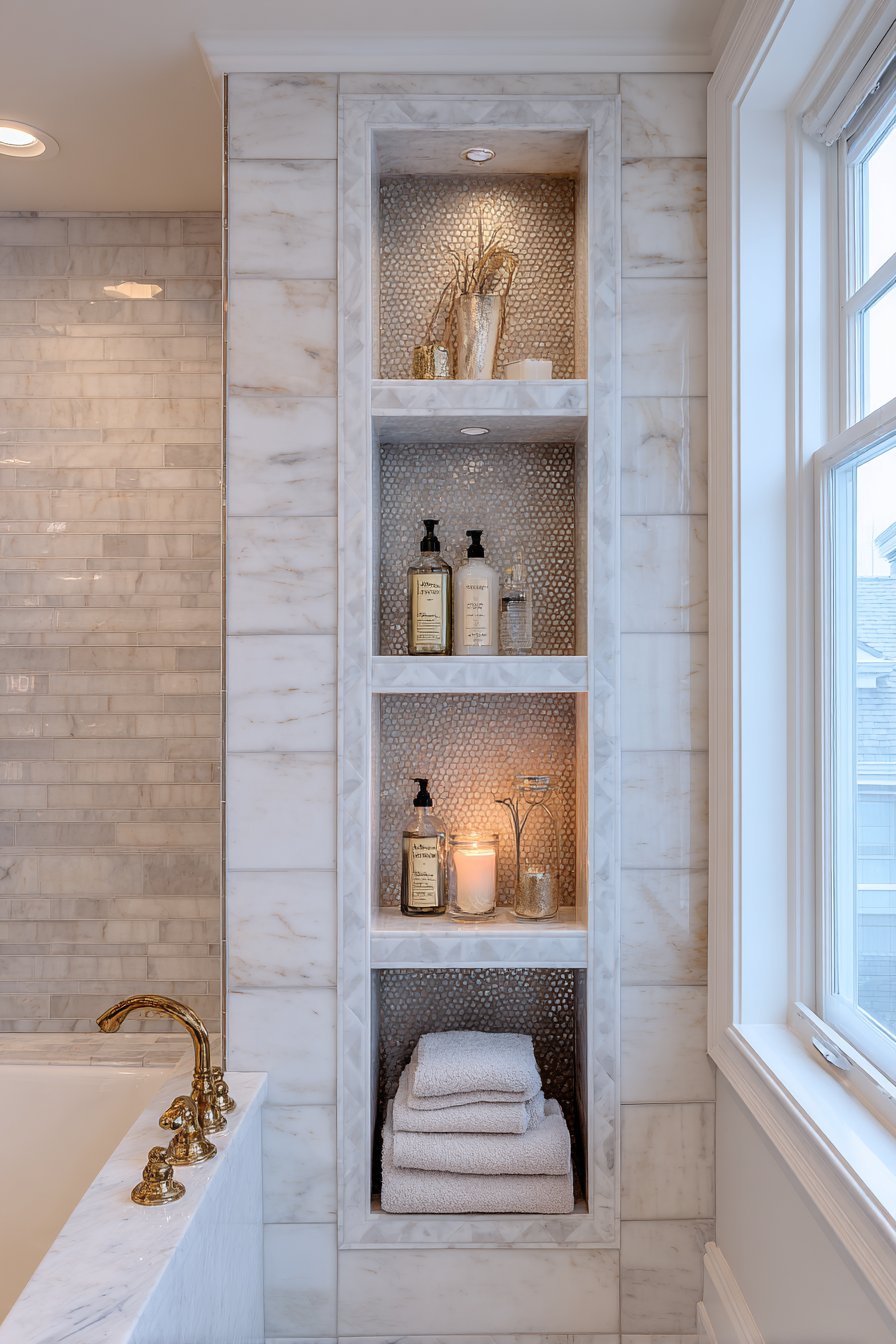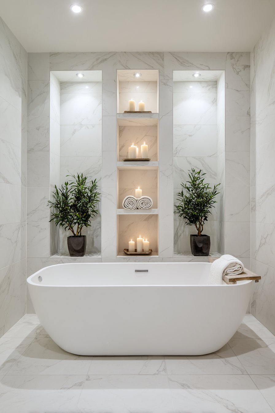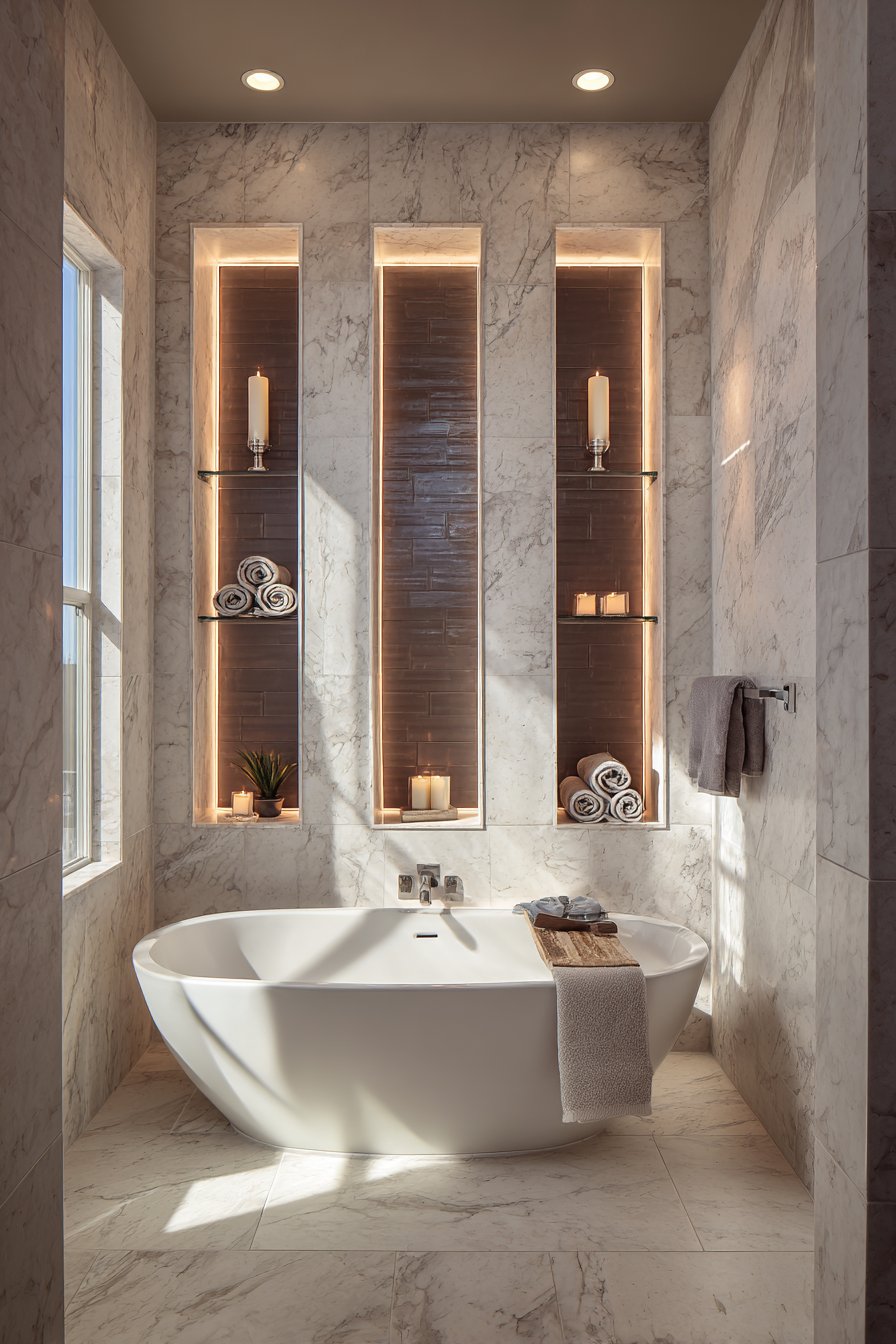 6. Luxury Bathroom Niches Flanking Freestanding Tub