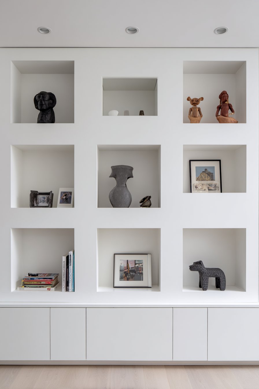 4. Minimalist Grid-Pattern Living Room Display Niches
