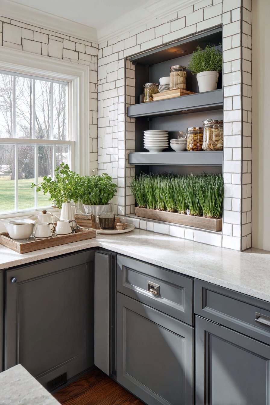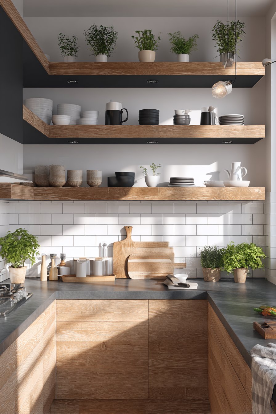 7. Modern Kitchen Open Shelving Alternative with Tile Niches