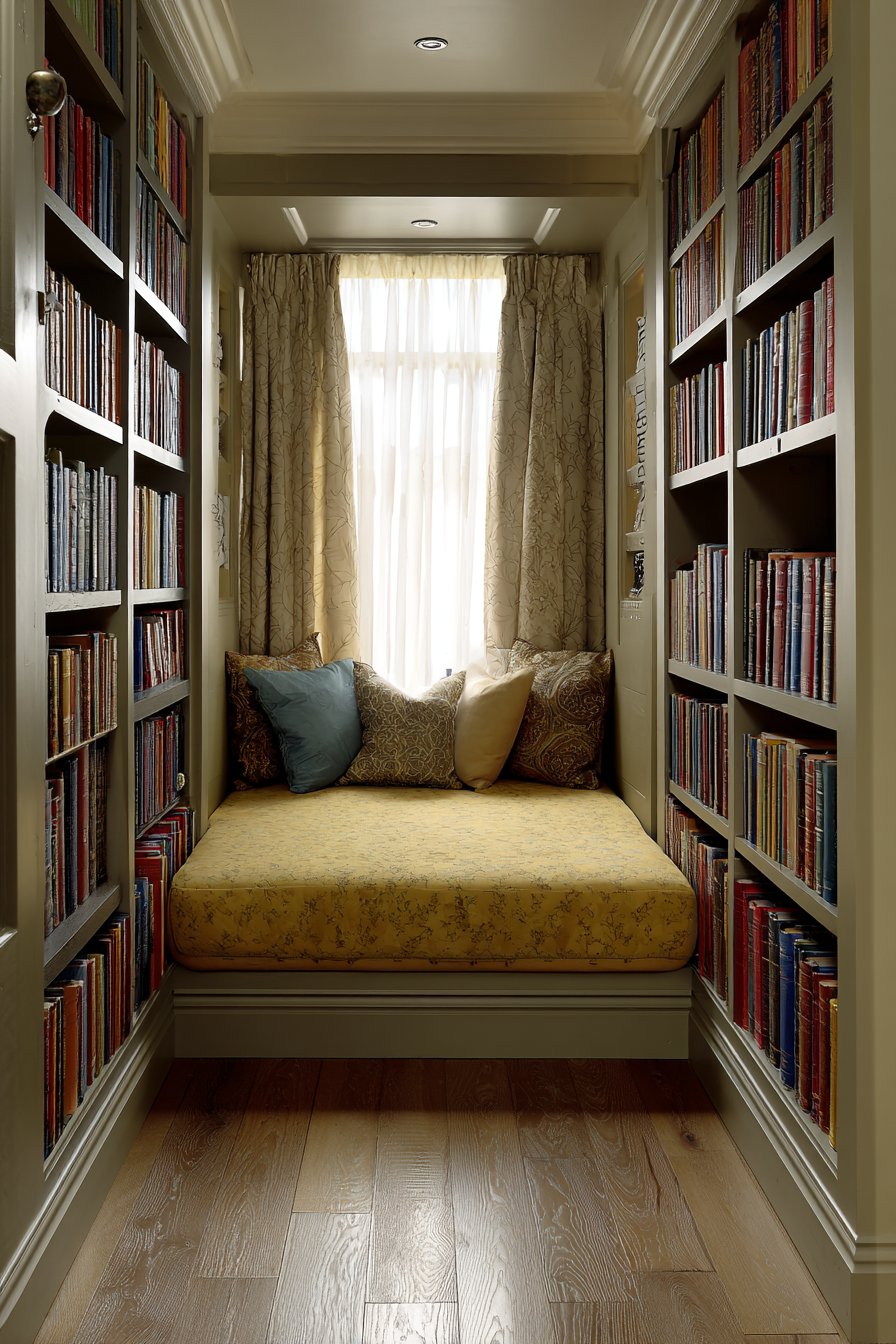 8. Cozy Reading Nook with Floor-to-Ceiling Book Storage Niches