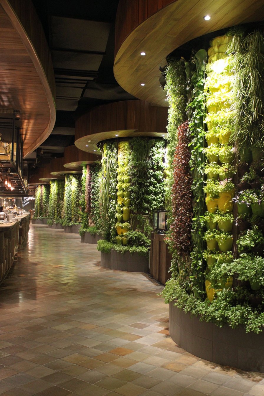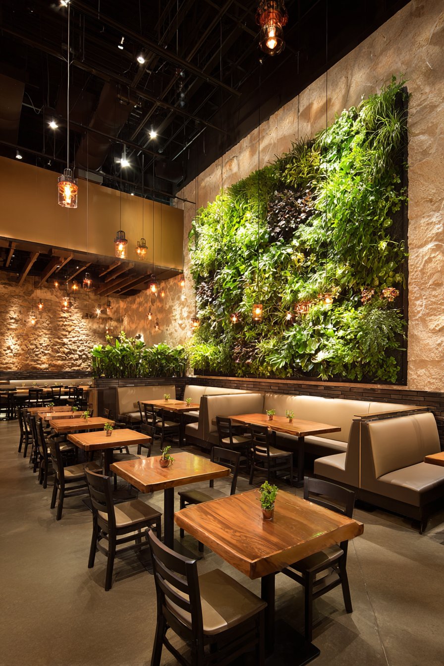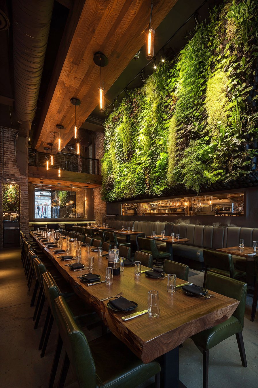 The living wall botanical installations and modular herb gardens represent the intersection of biophilic design principles with farm-to-table marketing narratives, creating immersive natural environments while demonstrating ingredient sourcing transparency. These installations address contemporary diners’ desires for wellness-supportive environments and sustainable practices, transforming functional walls into powerful brand statements that communicate values through design rather than words alone.