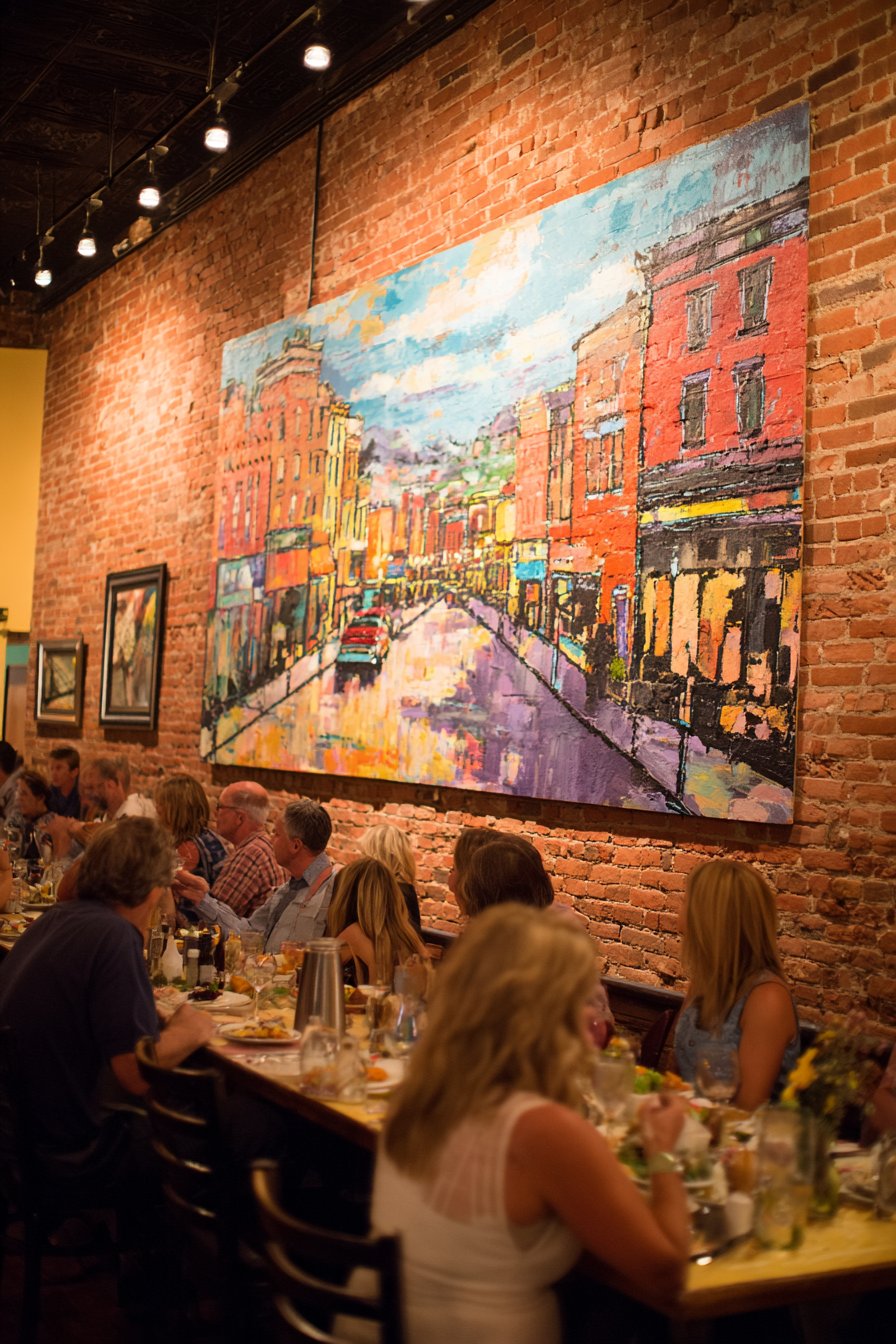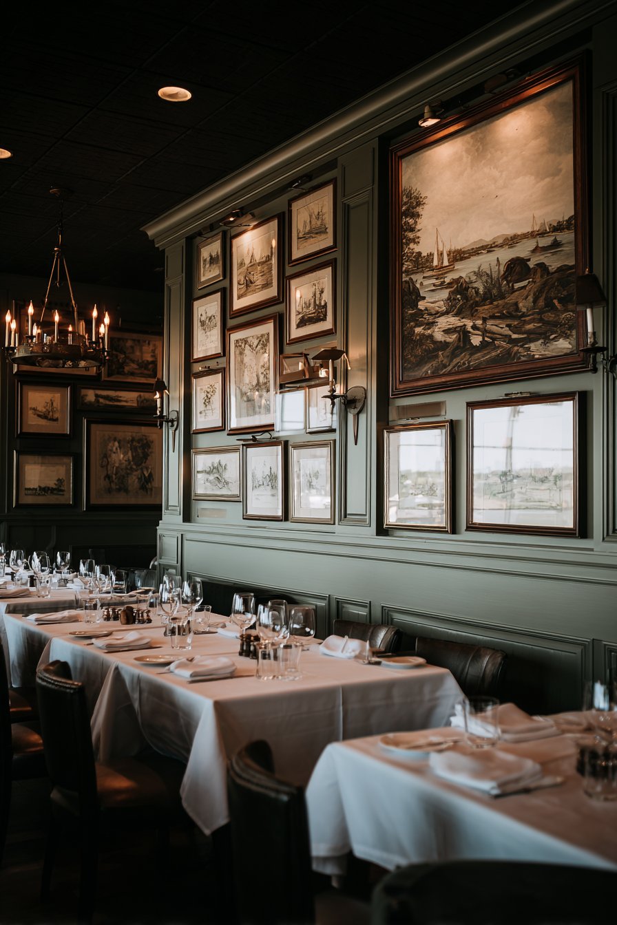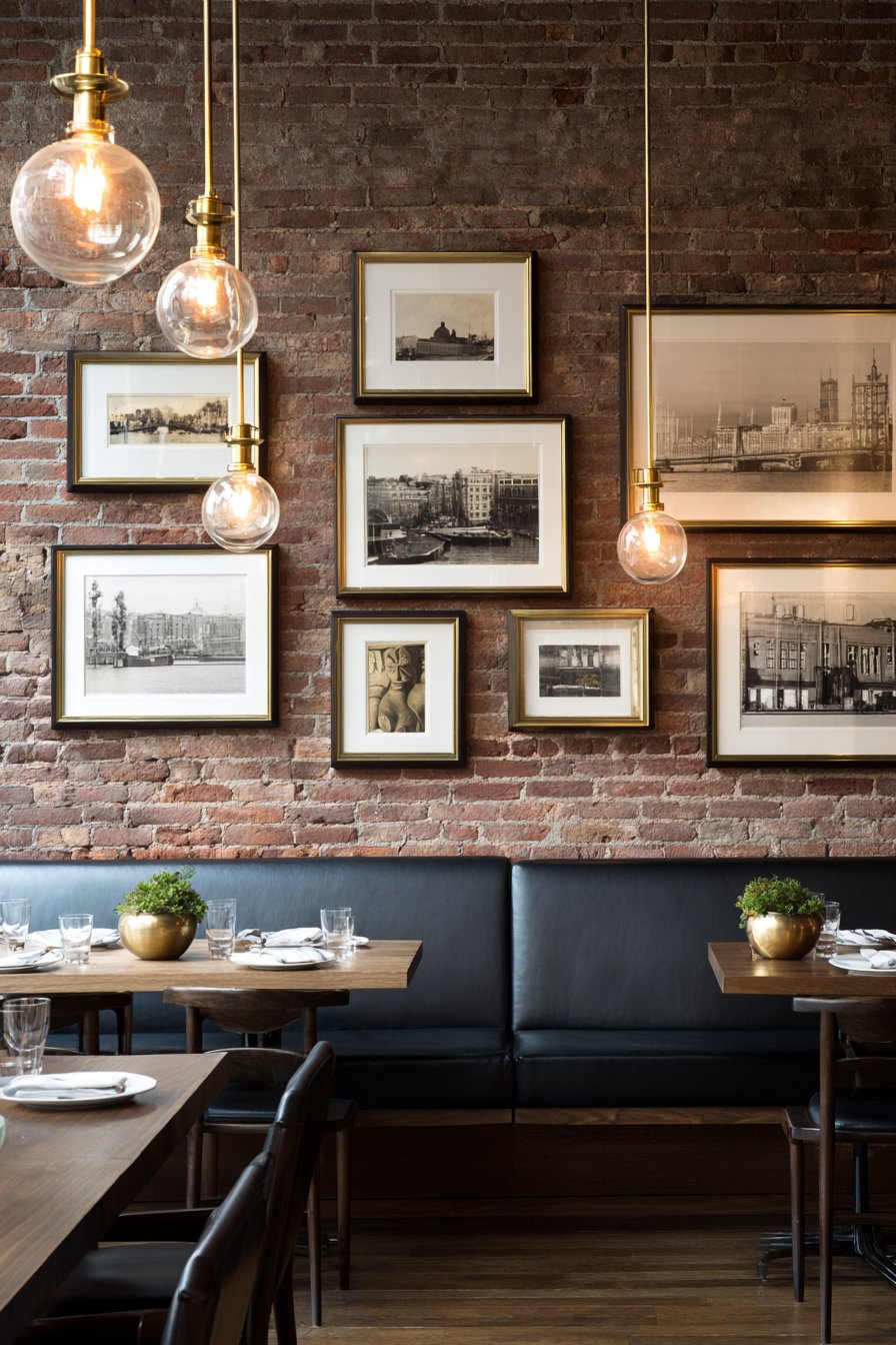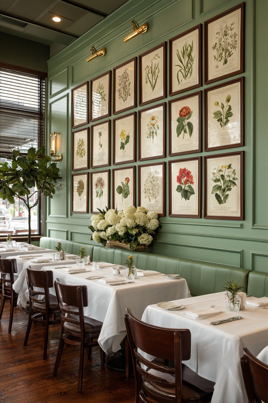 - Position the gallery wall at eye level when seated, as this is where diners will view it most frequently