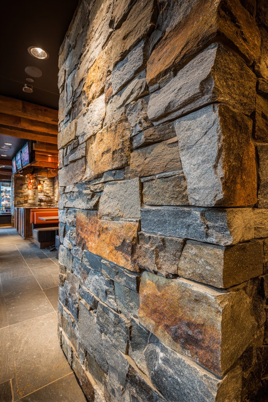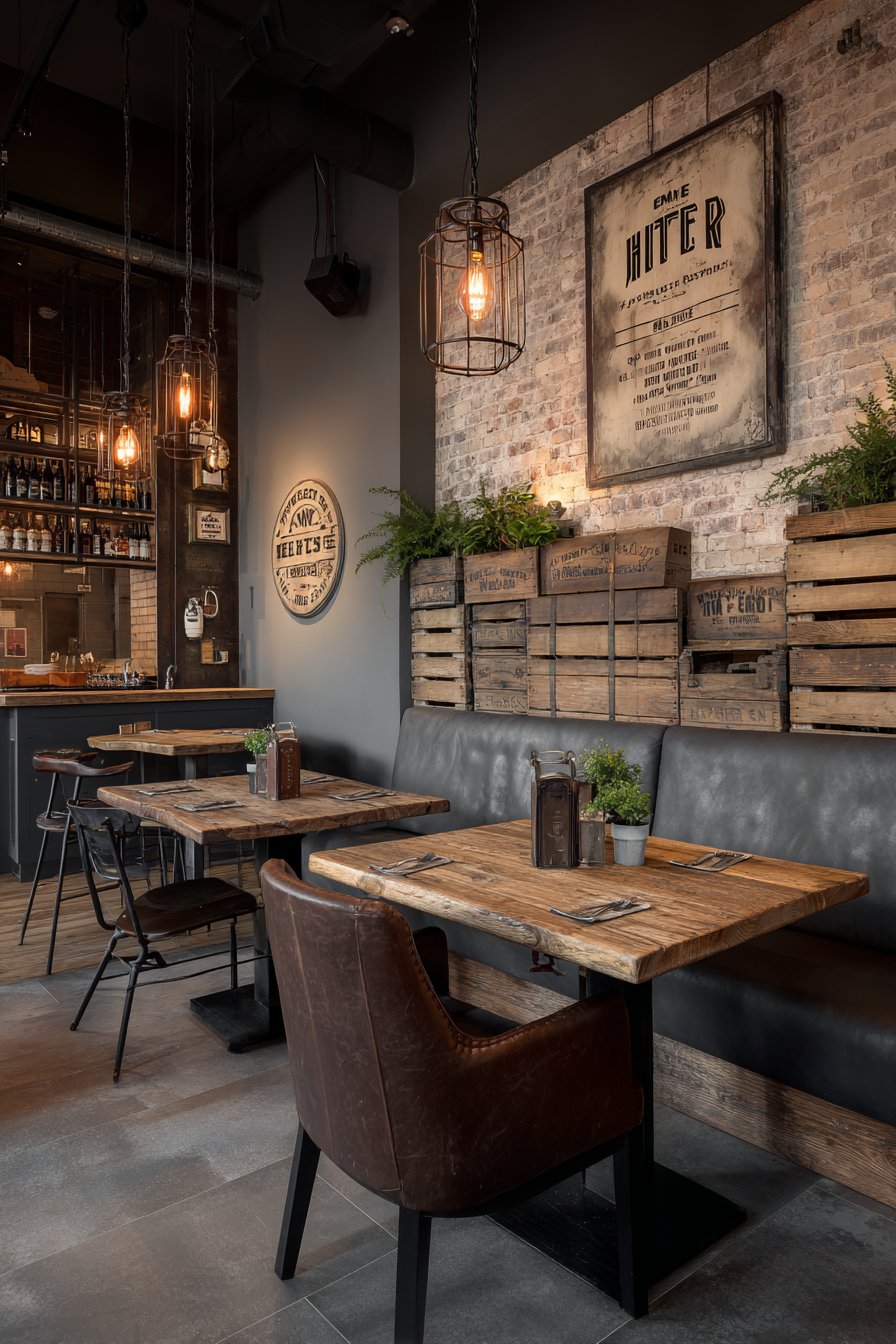 An industrial-style accent wall constructed from reclaimed wooden planks delivers instant character and authenticity to restaurant spaces, particularly those embracing rustic-modern, farmhouse, or industrial design aesthetics. The horizontal installation of planks in varying widths creates visual interest through pattern variation, while the natural weathered finishes—ranging from honey tones to deep walnut—tell stories of the wood’s previous life. Authentic details such as nail holes, saw marks, and natural color variations should be celebrated rather than concealed, as these imperfections provide the genuine patina that distinguishes reclaimed materials from manufactured alternatives.