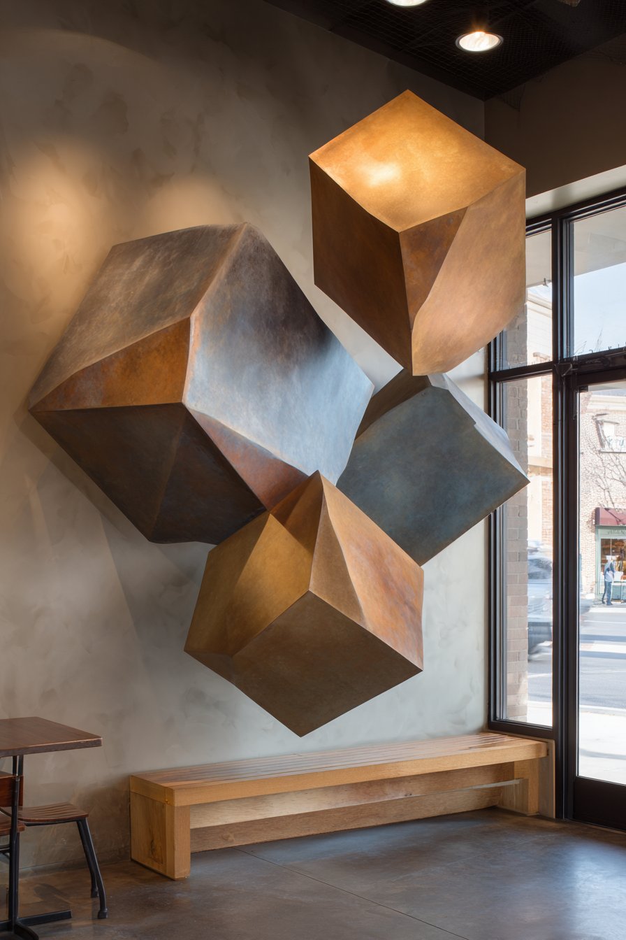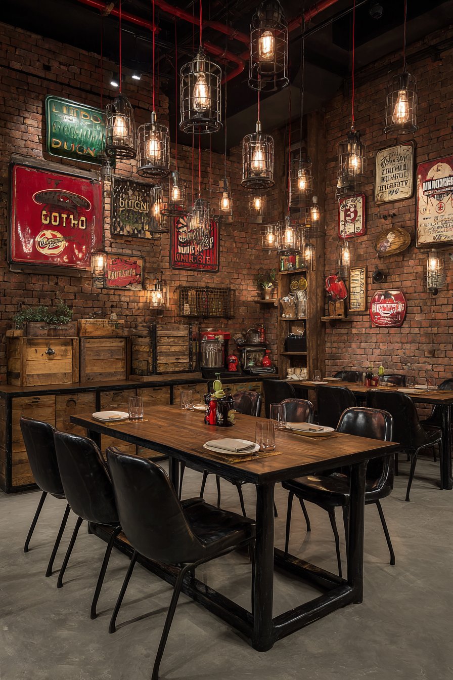 This wall treatment works particularly well in wine bars, romantic date-night restaurants, French bistros, and other establishments where Old World glamour and theatrical decor enhance brand positioning. The vintage mirrors can be sourced over time from estate sales, antique dealers, and specialty suppliers, with the collection building gradually to create authentic rather than manufactured eclecticism. The mirrors’ reflective properties also serve practical functions, increasing perceived space and ambient lighting levels.