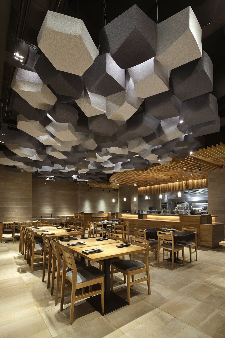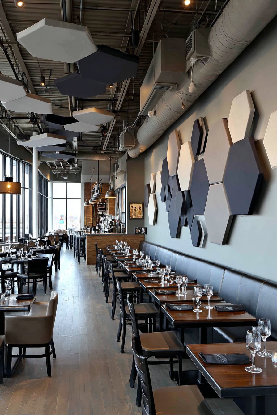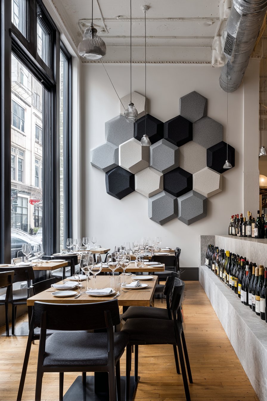 The acoustic solutions including fabric walls, dimensional tiles, and geometric panels demonstrate sophisticated understanding that successful restaurant design must address multiple sensory dimensions simultaneously. Comfortable conversation quality directly impacts guest satisfaction and duration, affecting both revenue per table and likelihood of return visits. These installations prove that functional requirements need not compromise aesthetic appeal when approached thoughtfully.