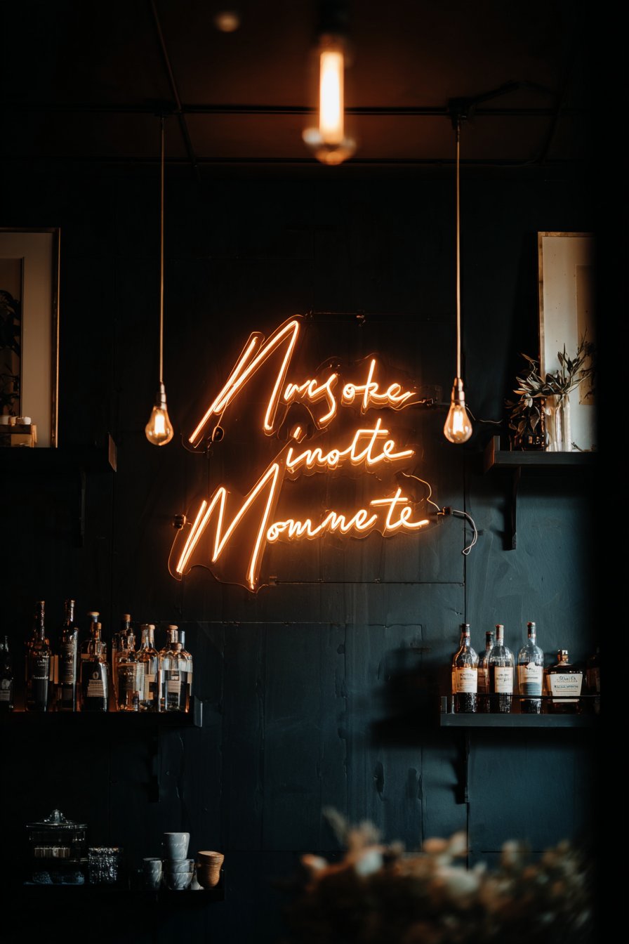 A custom-built wine storage wall integrated into a full-height display with backlit glass shelving and dark stained wood framing transforms functional wine storage into spectacular architectural artwork. Floor-to-ceiling installations holding hundreds of bottles organized by region create impressive visual impact while demonstrating the restaurant’s commitment to serious wine programs. Warm LED backlighting creates an amber glow that highlights the bottles’ shapes and liquid colors, transforming the wine collection into a luminous focal point that draws attention across the dining room.