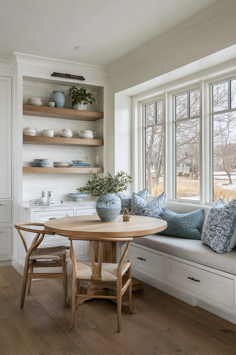 Key Design Tips: Install bench seating 18 inches deep for comfortable sitting, with seat height at 18 inches from the floor. Ensure adequate clearance between bench and table edge—12-15 inches allows comfortable seating and eating. Add cushions to built-in benches for additional comfort and seasonal color changes. Position the table to allow approximately 24 inches of space per person for comfortable dining. Install dimmer switches on overhead lighting to adjust ambiance from bright morning energy to softer evening mood.