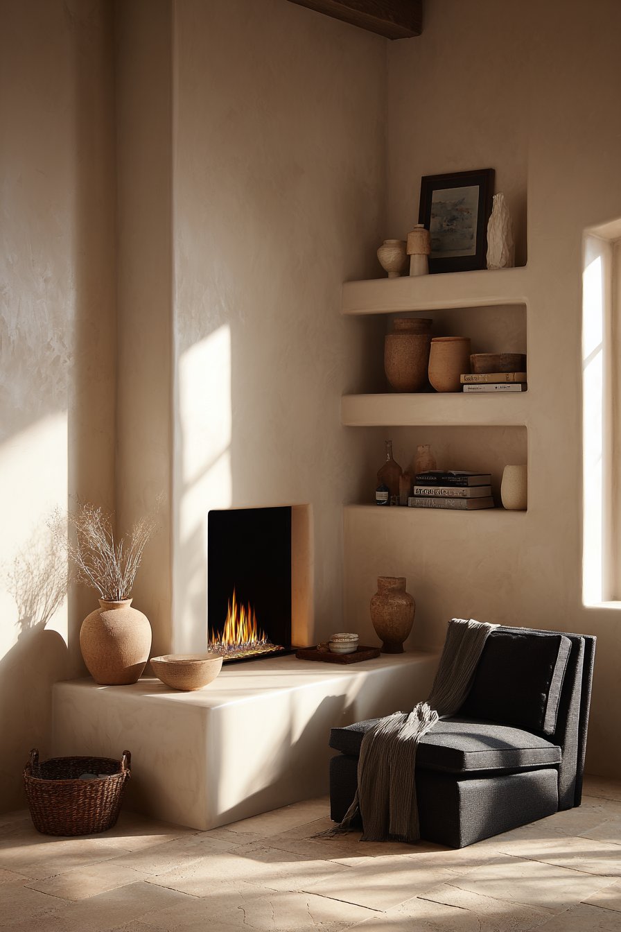 Key Design Tips: Maintain proper clearance around bioethanol fireplaces as specified by the manufacturer—typically 3 feet from combustible materials. Choose heat-resistant materials for shelving and surrounding surfaces. Decorate shelves with non-flammable items, avoiding paper products and fabrics near the fireplace. Use the fireplace as a design anchor, arranging furniture to orient toward it and create conversational groupings. Consider adding a carbon monoxide detector nearby as a safety precaution, even with clean-burning fuel.
