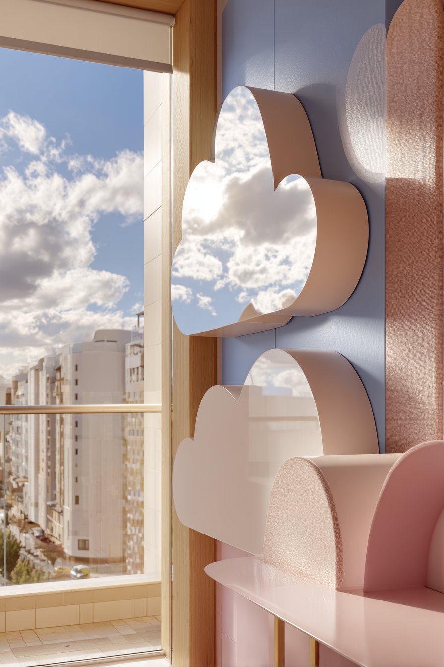 Key Design Tips: Always choose acrylic or polycarbonate safety mirrors rather than glass for children’s spaces to eliminate injury risk from breakage. Mount mirrors securely with appropriate hardware and verify periodically that they remain firmly attached. Position mirrors at appropriate heights for children’s developmental stages—lower for infants and toddlers, higher as children grow. Avoid placing mirrors directly across from cribs where they might overstimulate babies trying to sleep. Select playful shapes like clouds, stars, or animals that enhance the nursery theme while maintaining child-safe rounded edges.