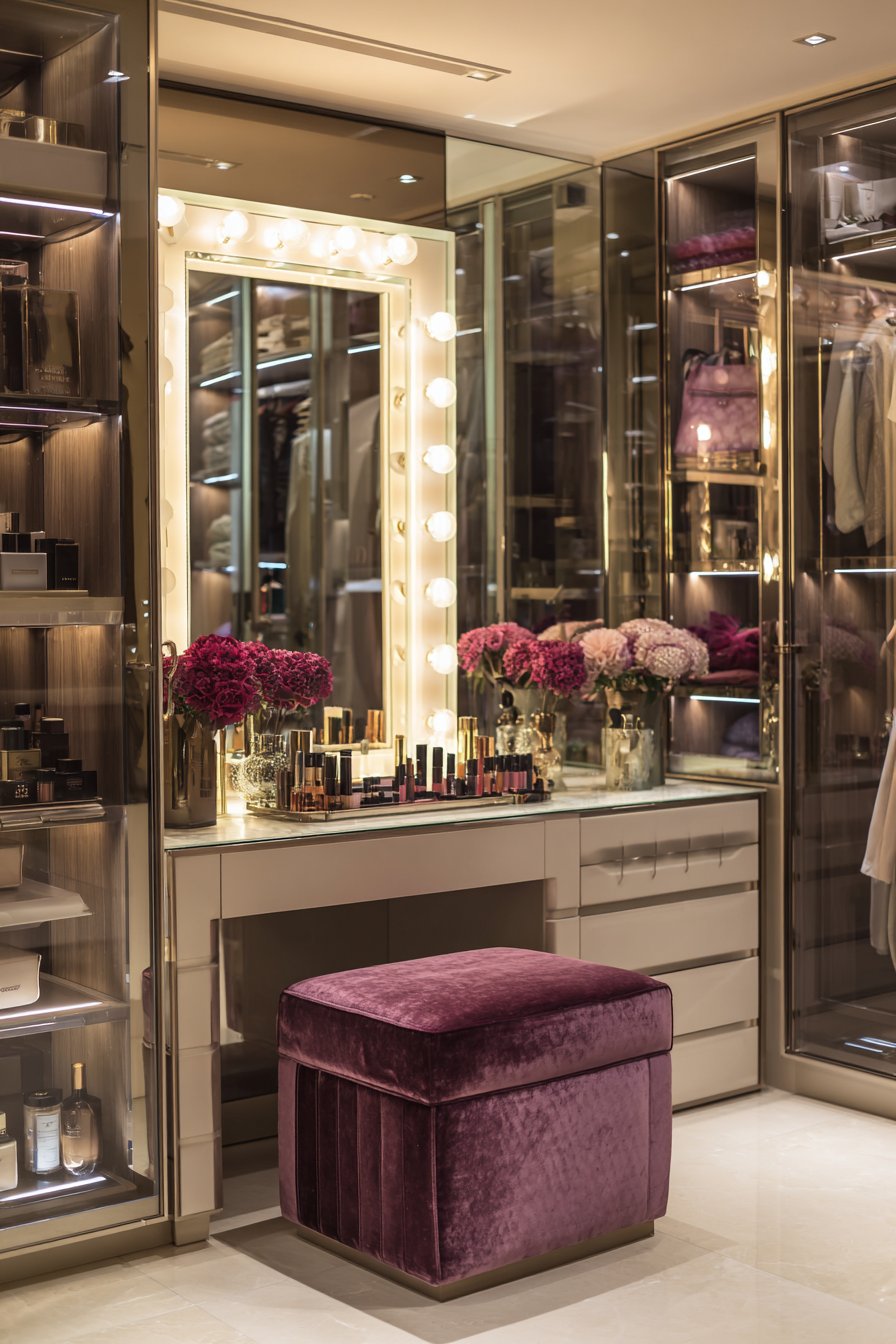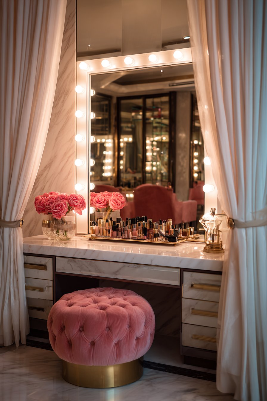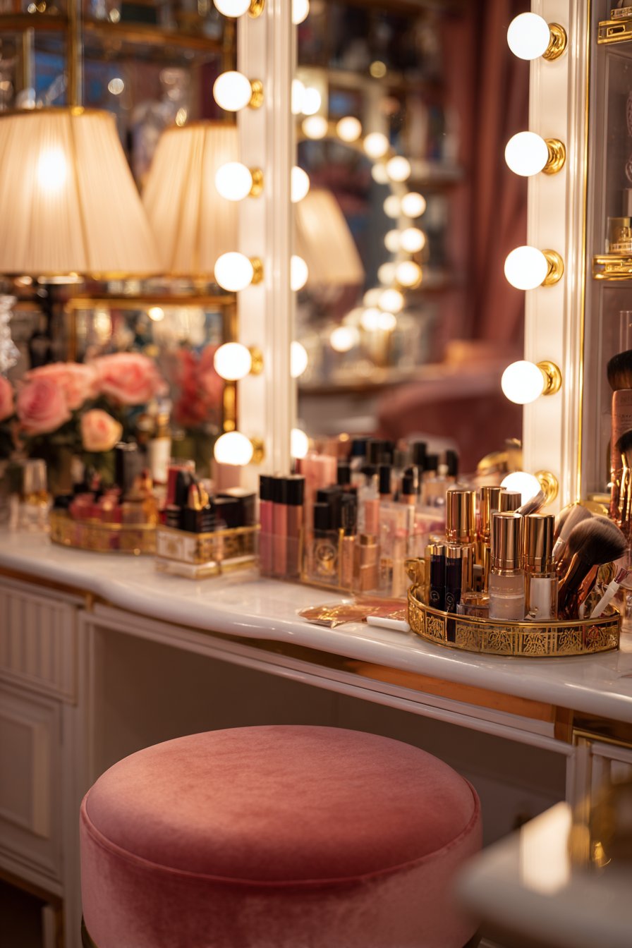 Key Design Tips: Choose LED bulbs in warm white color temperature (2700-3000K) for the most flattering, natural-looking illumination that doesn’t distort skin tones. Ensure adequate electrical capacity and hire a qualified electrician for installation if hardwiring rather than using plug-in models. Position the vanity mirror at seated eye level for comfortable use—typically 30-36 inches from floor to mirror center when seated. Include dimming capability if possible to adjust lighting intensity for different times of day and tasks. Keep the area around the illuminated mirror organized and clutter-free to maintain the luxurious, boutique atmosphere.