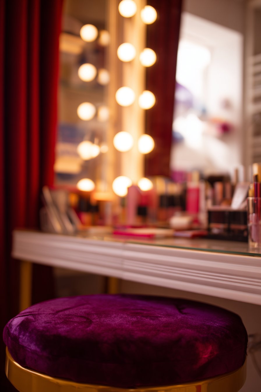 A plush velvet stool provides comfortable seating at the perfect height for extended grooming sessions, while organized cosmetics displays in coordinated containers create a boutique-like atmosphere that makes getting ready feel luxurious rather than rushed. The LED bulbs offer significant advantages over traditional incandescent vanity lights—they remain cool to the touch even during extended use, consume minimal electricity, and can last for years without requiring replacement. The warm color temperature (typically 2700-3000K) provides flattering illumination that closely mimics natural daylight without the harsh, clinical quality of cool-white bulbs.