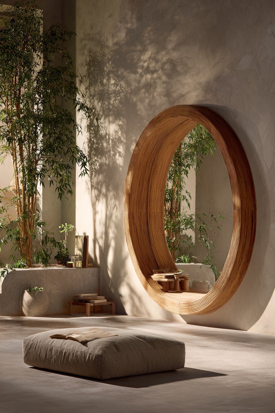 21. Zen Meditation Room Circular Bamboo Mirror