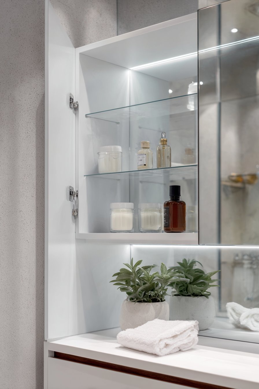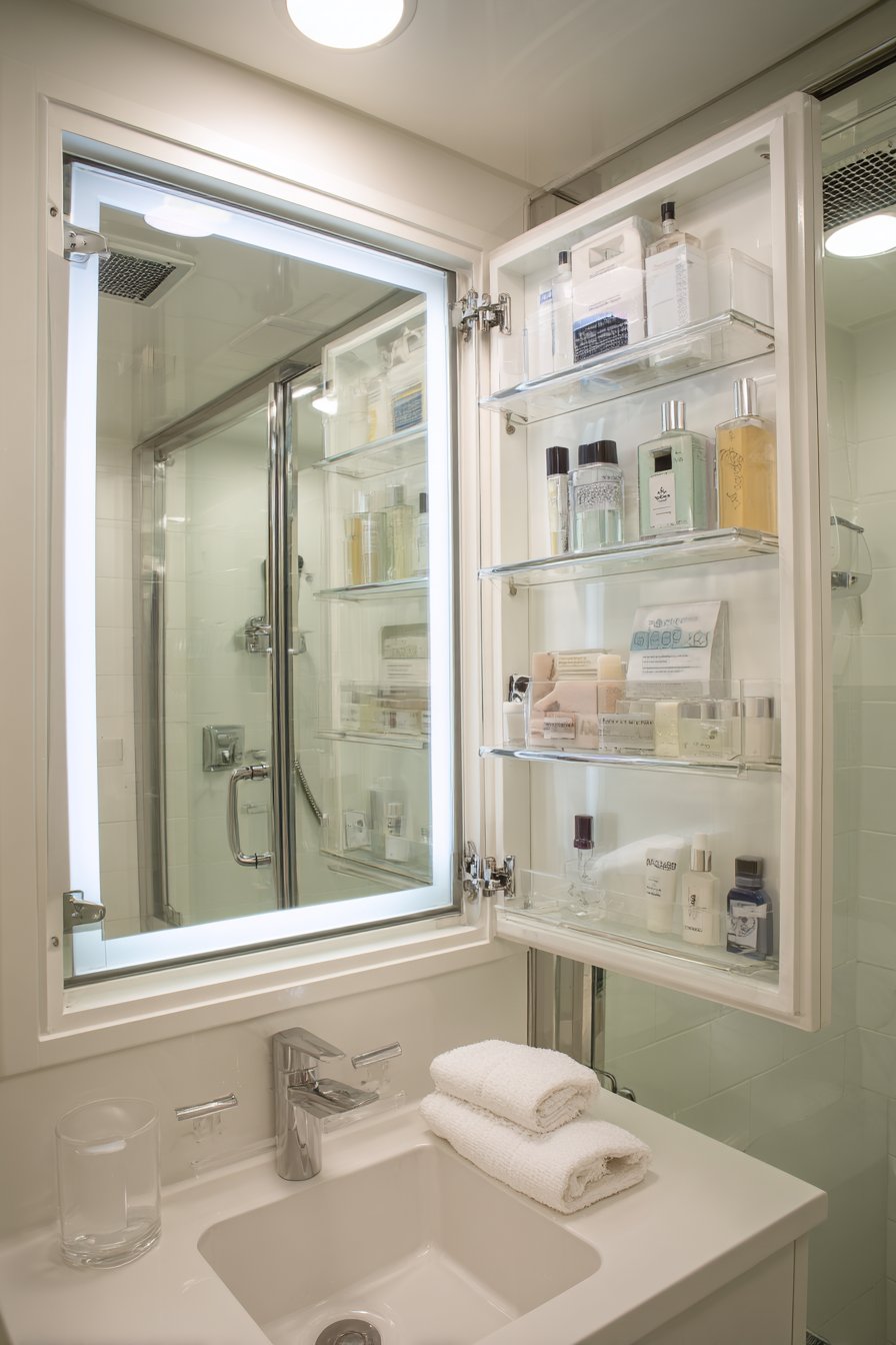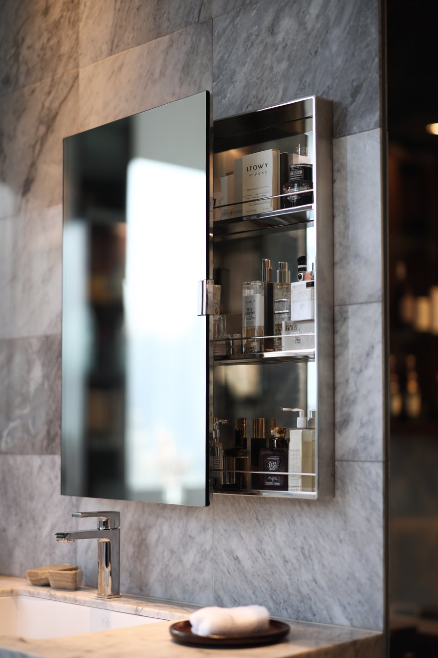 Key Design Tips: Measure carefully before purchasing medicine cabinet mirrors to ensure they fit your wall space and align properly with plumbing and electrical outlets. Choose soft-close hinges for quiet operation and extended longevity compared to standard hinges. Organize cabinet contents thoughtfully with like items together and frequently used products at most accessible heights. Clean both the exterior mirror surface and interior shelving regularly to maintain hygienic storage. Consider installation height carefully, typically with the mirror center at 60-65 inches from the floor for comfortable use by average-height adults.