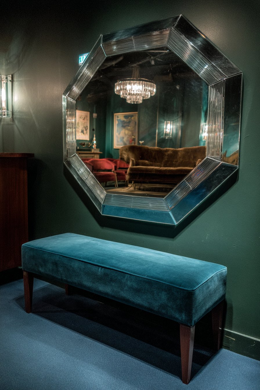 Key Design Tips: Source authentic art deco or high-quality reproduction mirrors that capture the era’s precise geometric detailing and appropriate materials. Position octagonal mirrors where their distinctive shape can be fully appreciated without being cramped by surrounding elements. Coordinate frame finishes with other art deco metallics in the space—chrome pairs beautifully with brass, nickel, and black lacquer. Clean chrome finishes with appropriate metal polishes to maintain the brilliant shine essential to the art deco aesthetic. Complete the era-appropriate styling with geometric patterns, luxurious fabrics, streamlined furniture, and jewel-tone colors that characterized this distinctive design period.