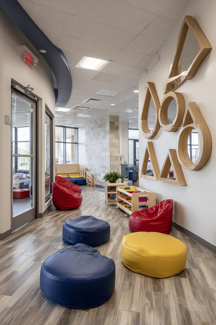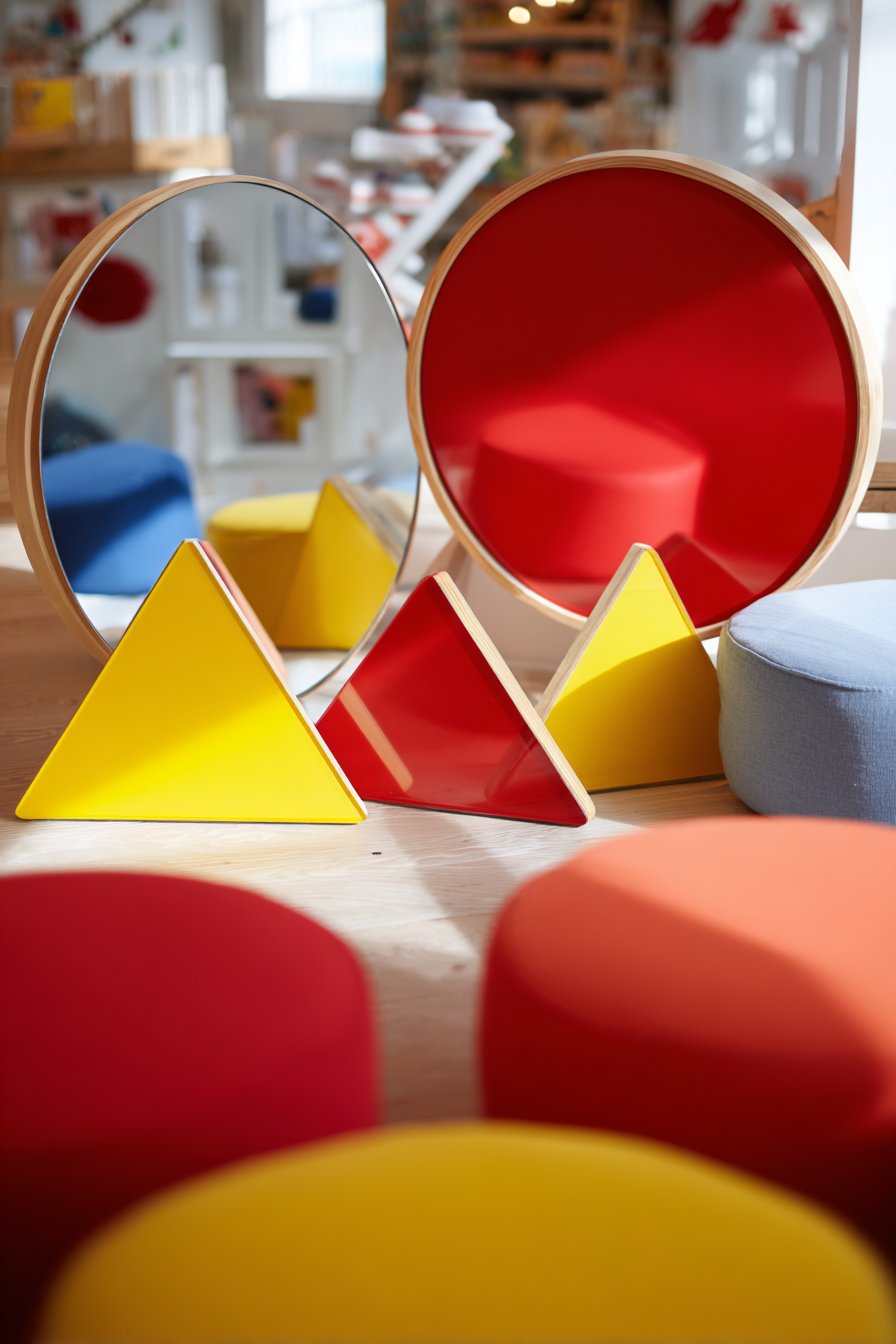 27. Child-Safe Playroom Geometric Mirror Wall
