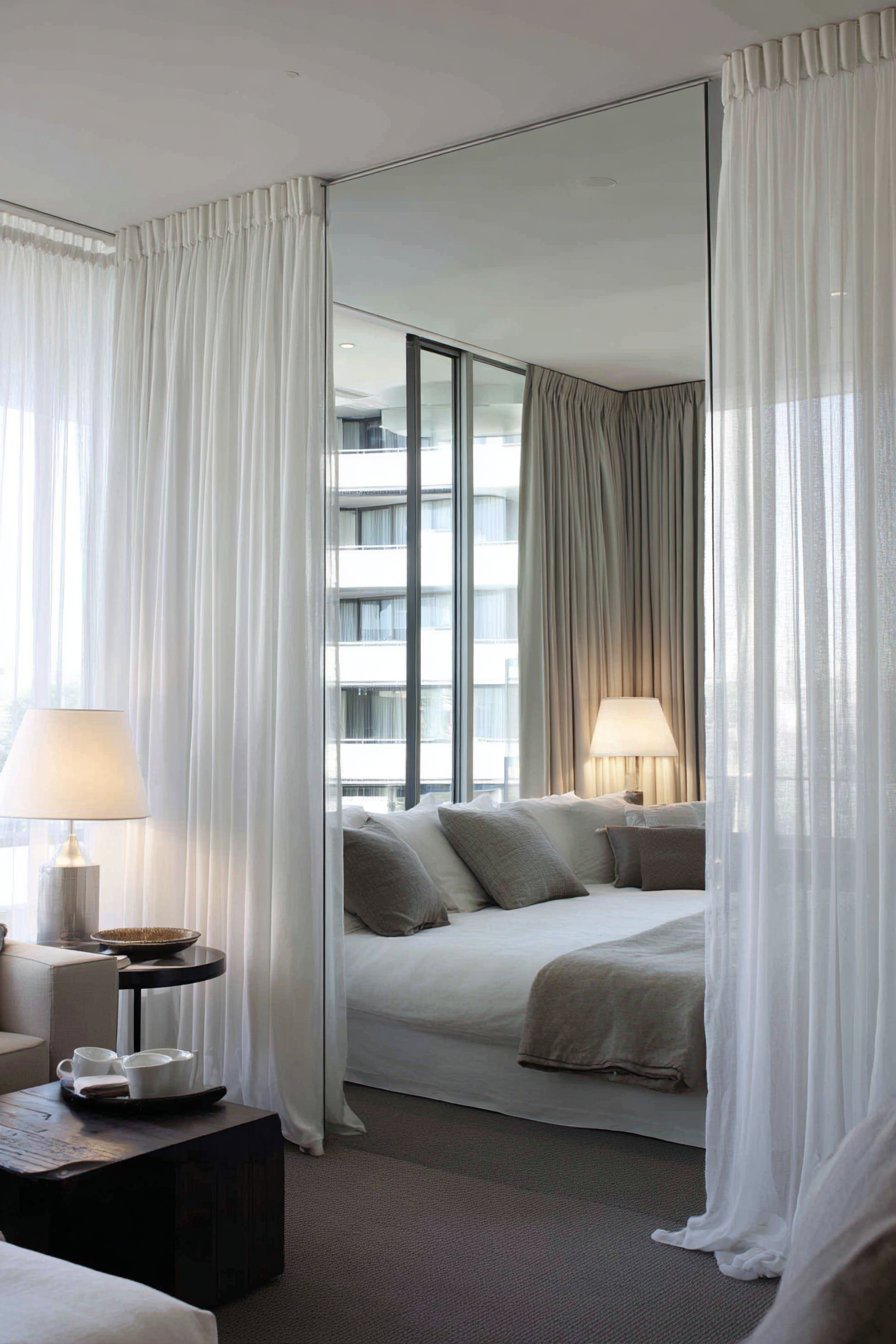 10. Elegant Master Bedroom Symmetrical Mirror Pair