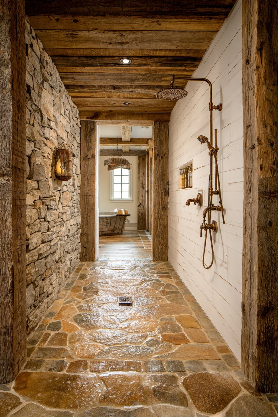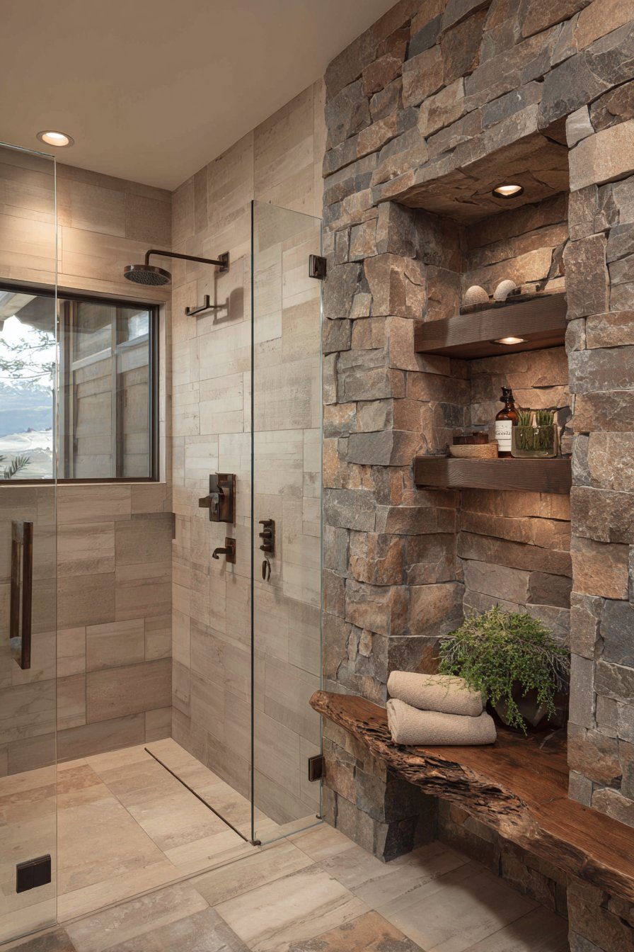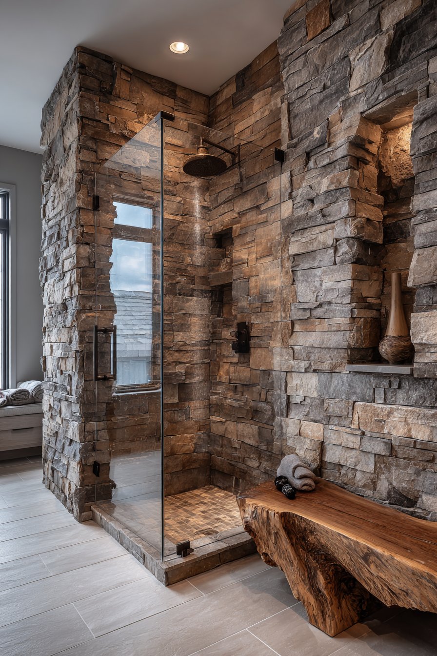1. Natural Stone Sanctuary with Reclaimed Wood Accents