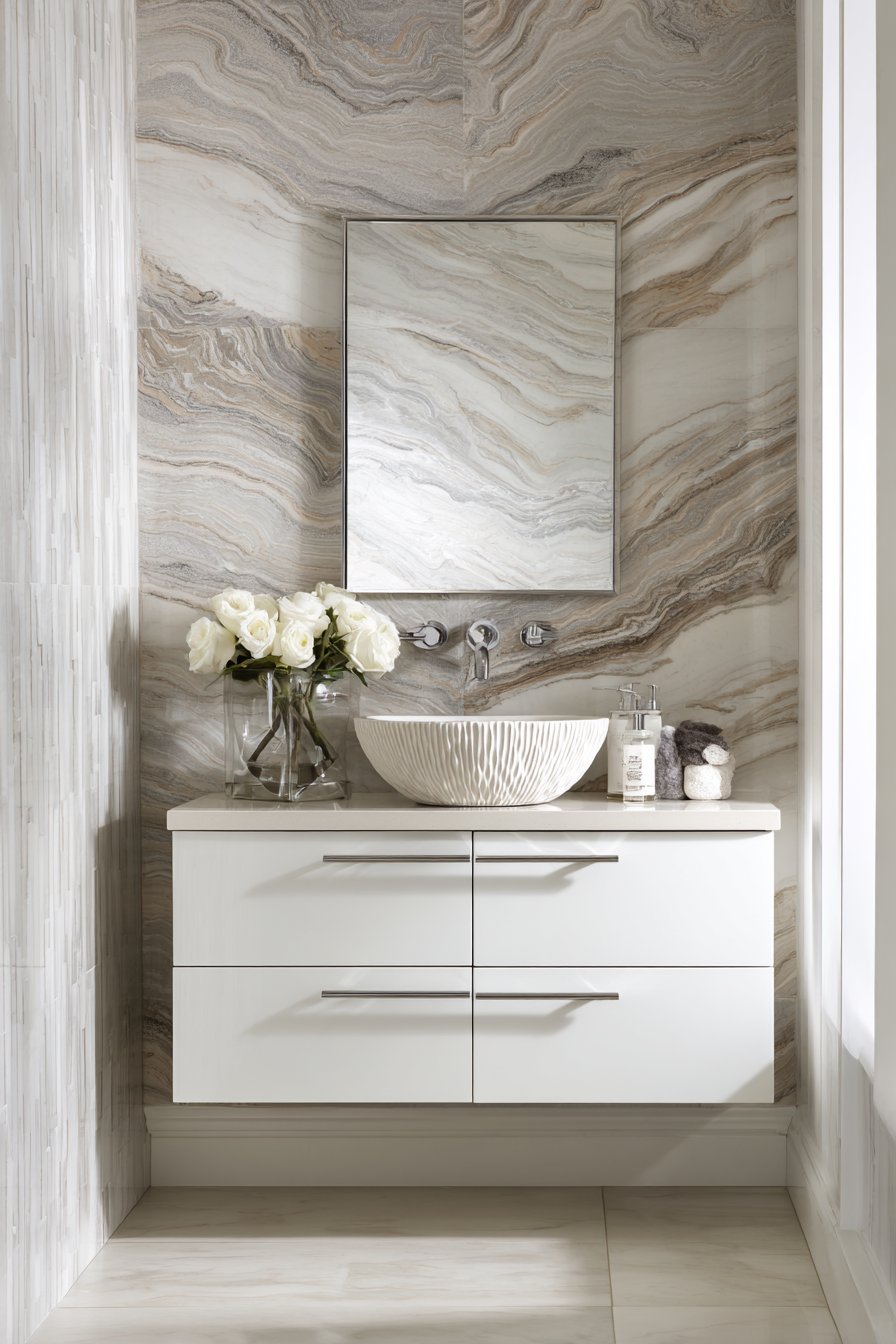 - Select a wall-mounted vanity to create the illusion of more floor space