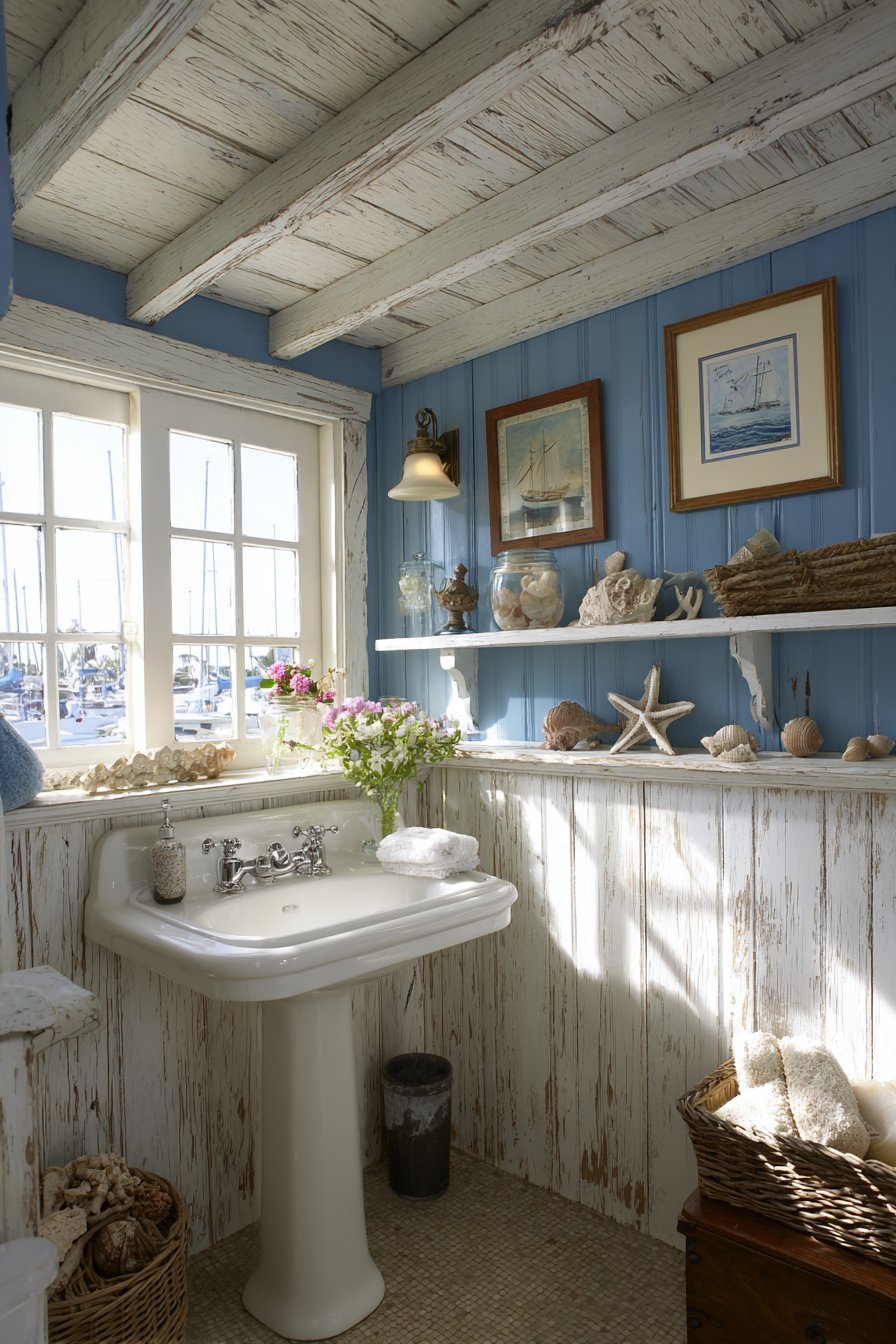 - Incorporate a vintage porthole mirror for authentic maritime character