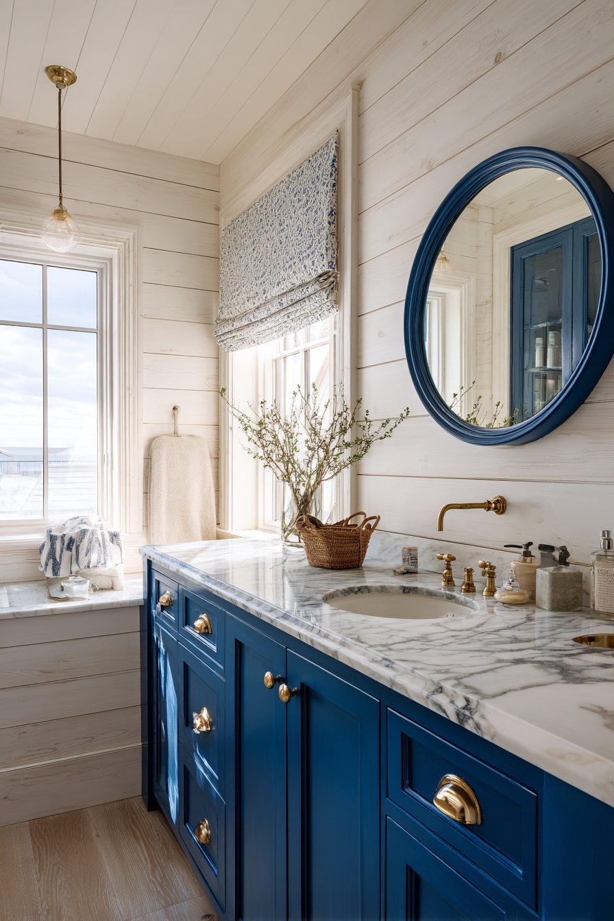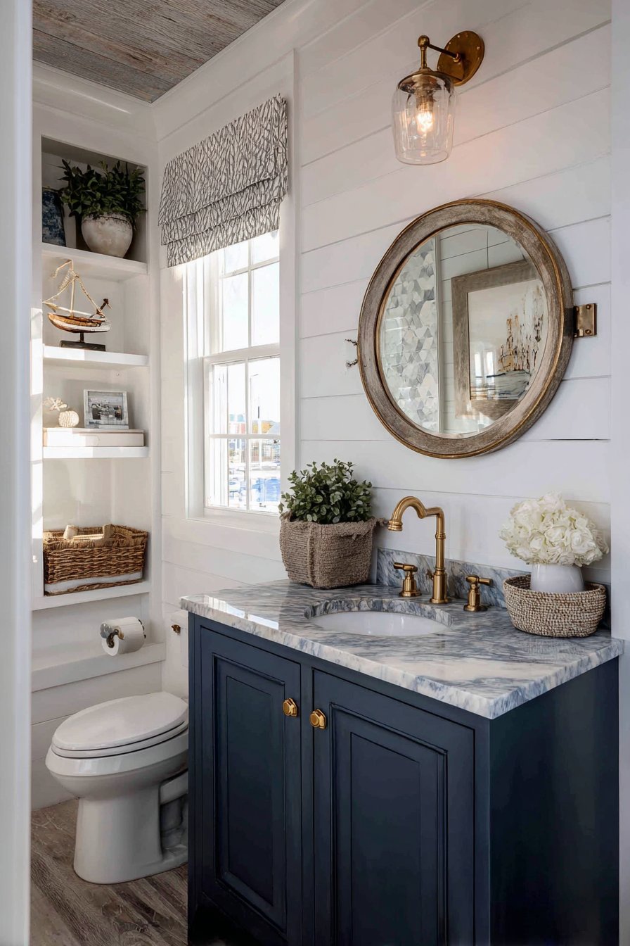 - Install a porthole mirror to reinforce nautical theme and provide circular contrast