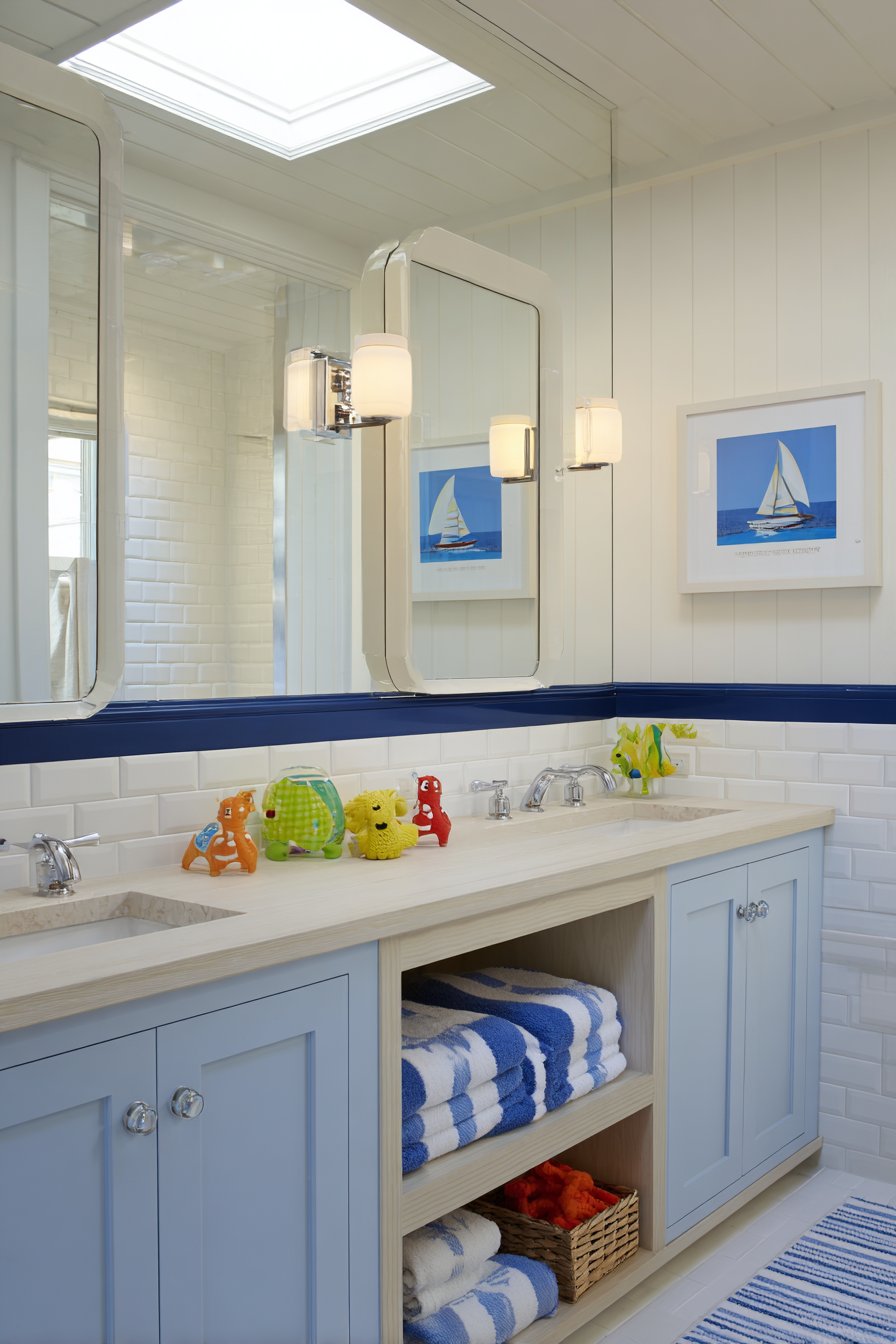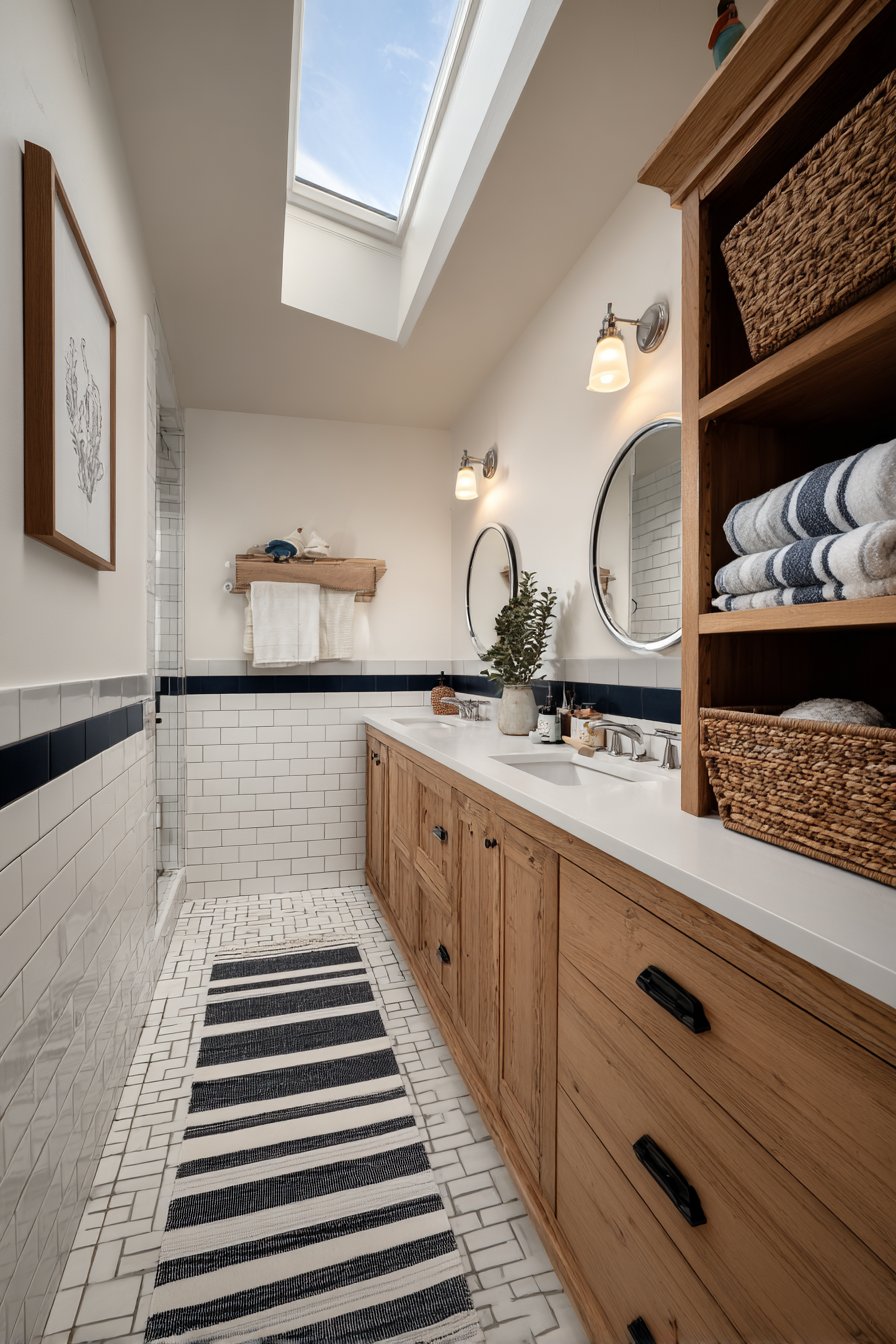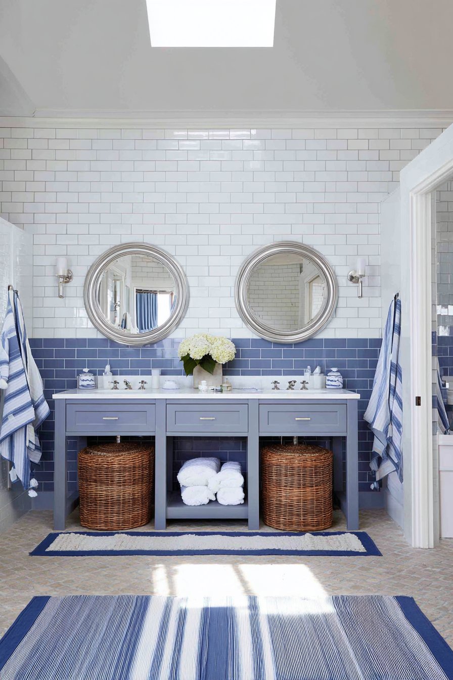 - Incorporate striped patterns in bath mats and towels for classic nautical reference