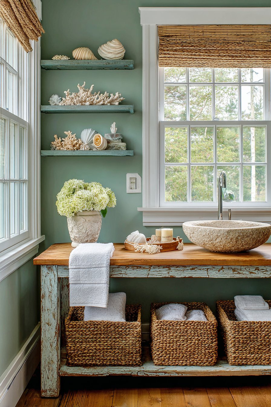 - Paint walls in soft seafoam green to evoke coastal waters and create a calming environment