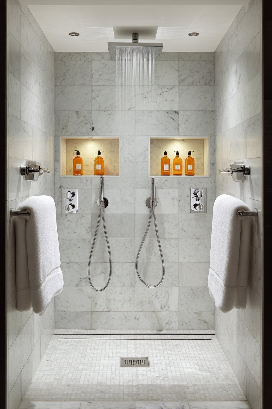 - Consider adding a small water feature or rain panel elsewhere in the shower to complete the spa experience